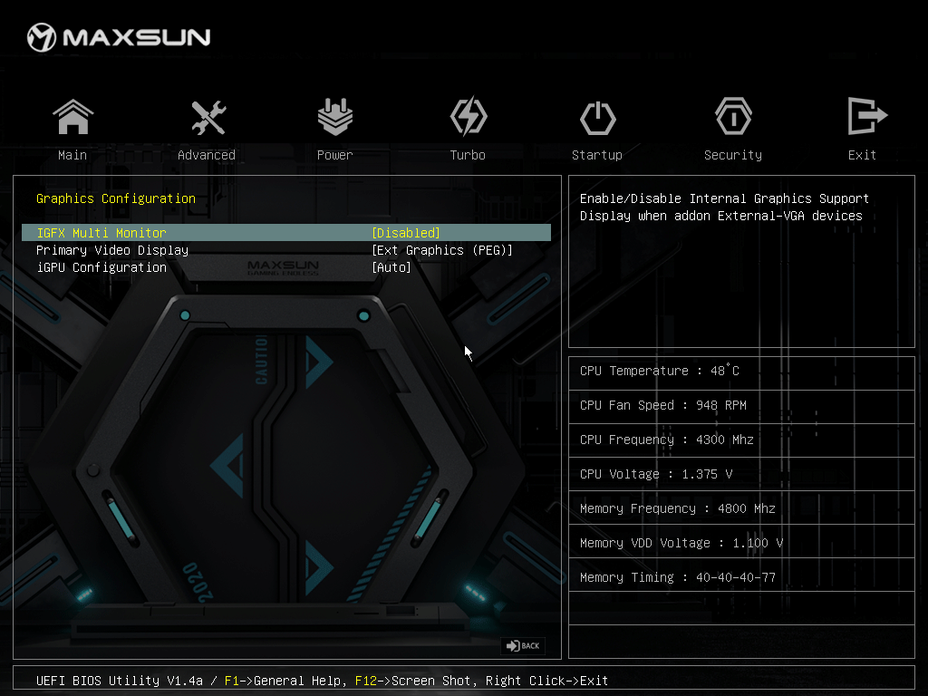 Как мы видим, охлаждение чипсета организовано с помощью отдельного небольшого радиатора. VRM-секция имеет свой и только один радиатор для охлаждения только 9 фаз из 12-ти. Почему остальные оставлены без охлаждения – вопрос к инженерам Maxsun.