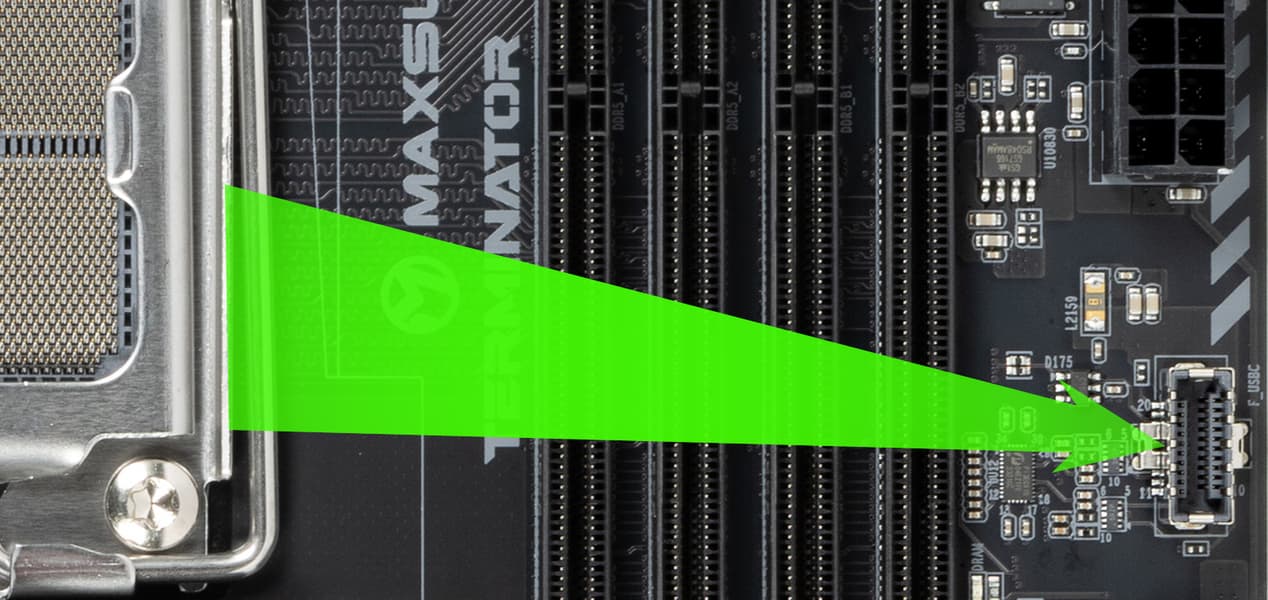 - 2 порта USB 3.2 Gen2: все реализованы через CPU и один представлен на задней панели портом Type-C; второй представлен внутренним портом Type-C (для подключения к соответствующему разъему на передней панели корпуса);