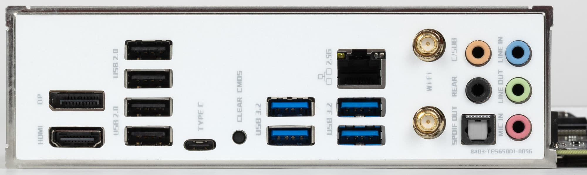 | Разъемы на задней панели | 4 × USB 3.2 Gen1 (Type-A) 1 × USB 3.2 Gen2 (Type-C) 4 × USB 2.0 (Type-A) 1 × RJ-45 2 антенных разъема 1 кнопка обновления BIOS 1 оптический аудиоразъем S/PDIF 5 аудиоразъемов типа миниджек 1 × HDMI 2.0b 1 × DP 1.4 |