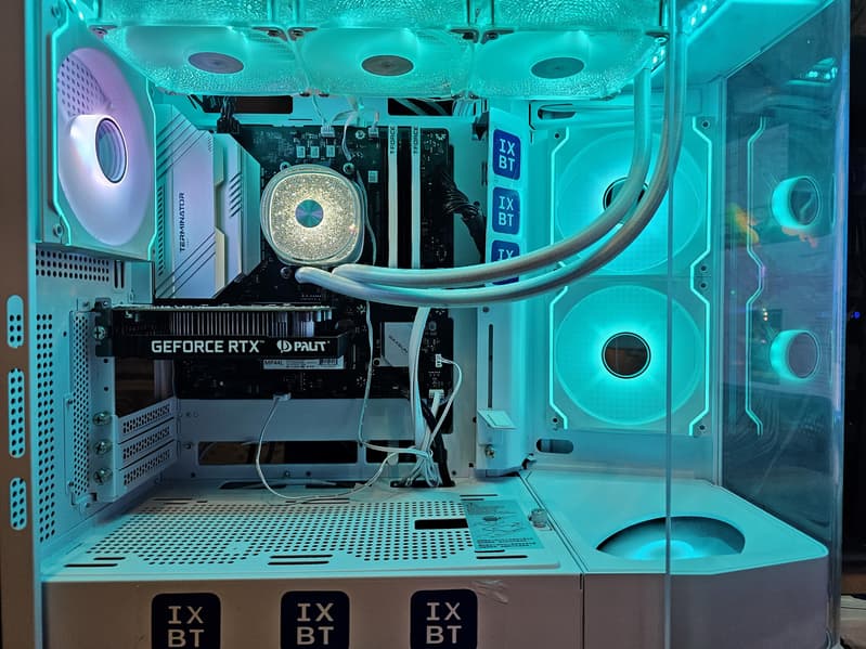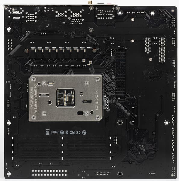 Разумеется, поддержка периферии у такой платы более скромная, чем мы привыкли видеть у дорогих продуктов даже на том же чипсете B650: всего 14 портов USB разных видов (самых быстрых USB 3.2 Gen2×2 нет вовсе), 1 слот PCIe х16 (он подключен к процессору 16 линиями PCIe 4.0), 1 слот PCIe x1 и 1 слот PCIe x4, всего 2 слота M.2 (подключены напрямую к процессору линиями PCIe 4.0), 4 порта SATA и 4 разъема для вентиляторов. Также стоит отметить наличие двух сетевых контроллеров: проводного (2,5-гигабитного) и беспроводного (Wi-Fi 6E).