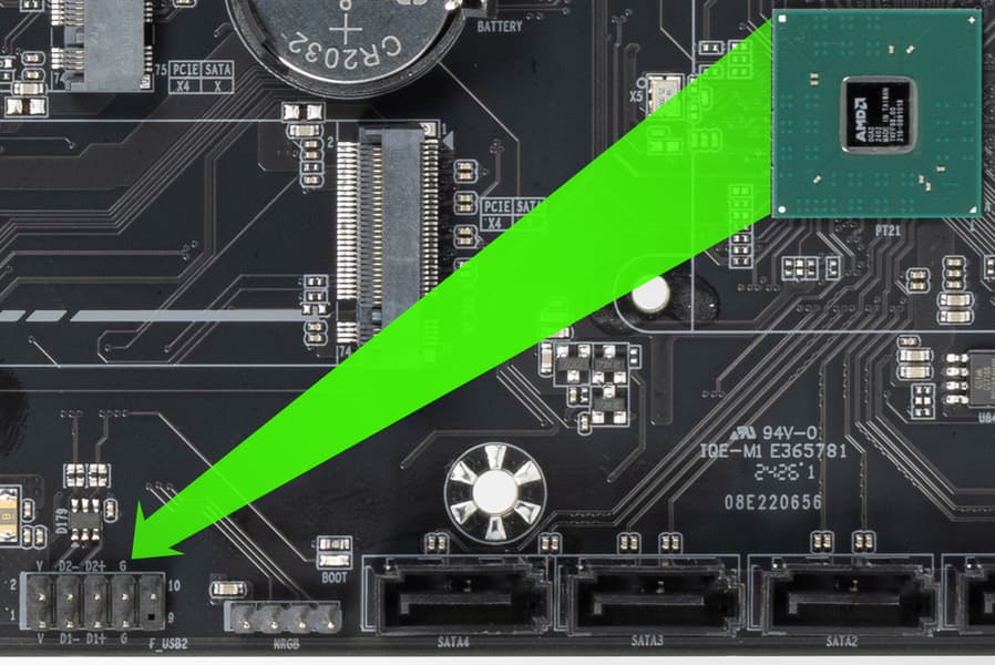 - 6 портов USB 2.0/1.1: все реализованы через B650 и представлены: 4 – на задней панели портами Type-A (черного цвета); еще 2 – внутренним разъемом на материнской плате на 2 порта.