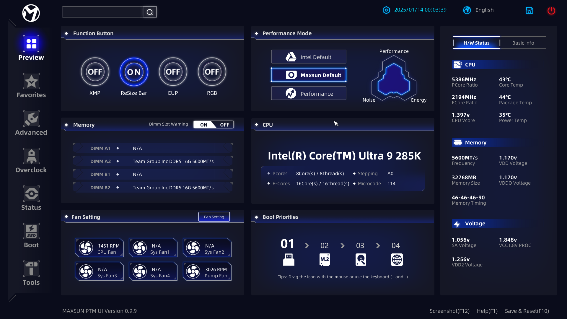 В режиме авторазгона мы получили до 5,3 –5,4 ГГц по P-ядрам, и 4.6 ГГц по всем Е-ядрам. Напомню, что начиная с этого поколения процессоров, все ядра имеют по 1 потоку, то есть гипертрейдинга (многопоточности) теперь нет. Потребление процессора достигало 185 Вт. Мы видим в целом, что авторазгон не максимальный (мы встречали и 5.7 ГГц по P-ядрам). Безусловно, в данном случае основную роль играет то, что система питания у данной платы явно не самая мощная (по сути 8 параллельных фаз), а также тот факт, что профиль Maxsun основан на настройках от Intel, сильно лимитирующих авторазгон. Однако такого авторазгона достаточно для 99% потребителей, и с учетом стоимости данной материнки (по сравнению с аналогами от маститых производителей), мы выносим положительный вердикт в целом.