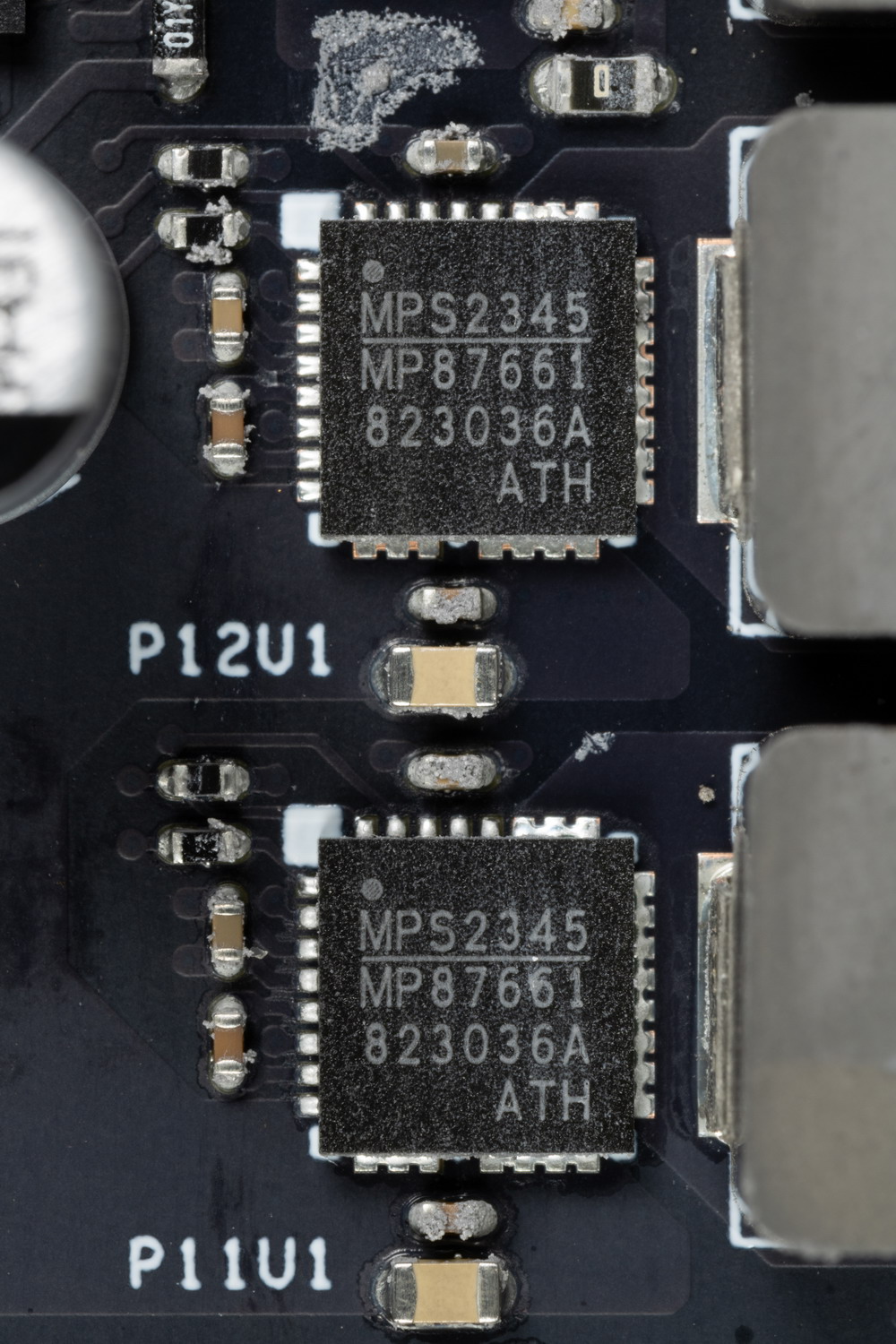 Каждый канал фазы VCore, iGPU и VNNAON имеет суперферритовый дроссель и MP87661 DrMOS от Monolithic Power Systems (MPS) на 60 А.
