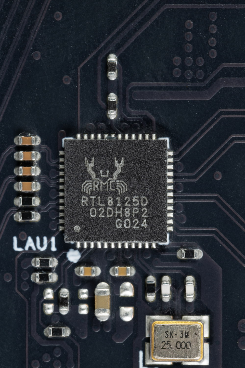 Материнская плата оснащена средствами связи хорошо. Имеется скоростной Ethernet-контроллер Realtek RTL8125D, способный работать по стандарту 2,5 Гбит/с.