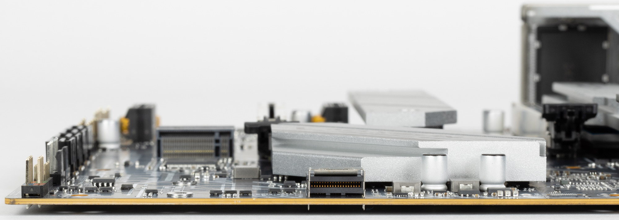 Не все M.2 слоты имеют радиаторы. Только слоты M.2_A и M.2_B обладают своими отдельными радиаторами, когда как остальные 2 слота M.2 – без охлаждения.