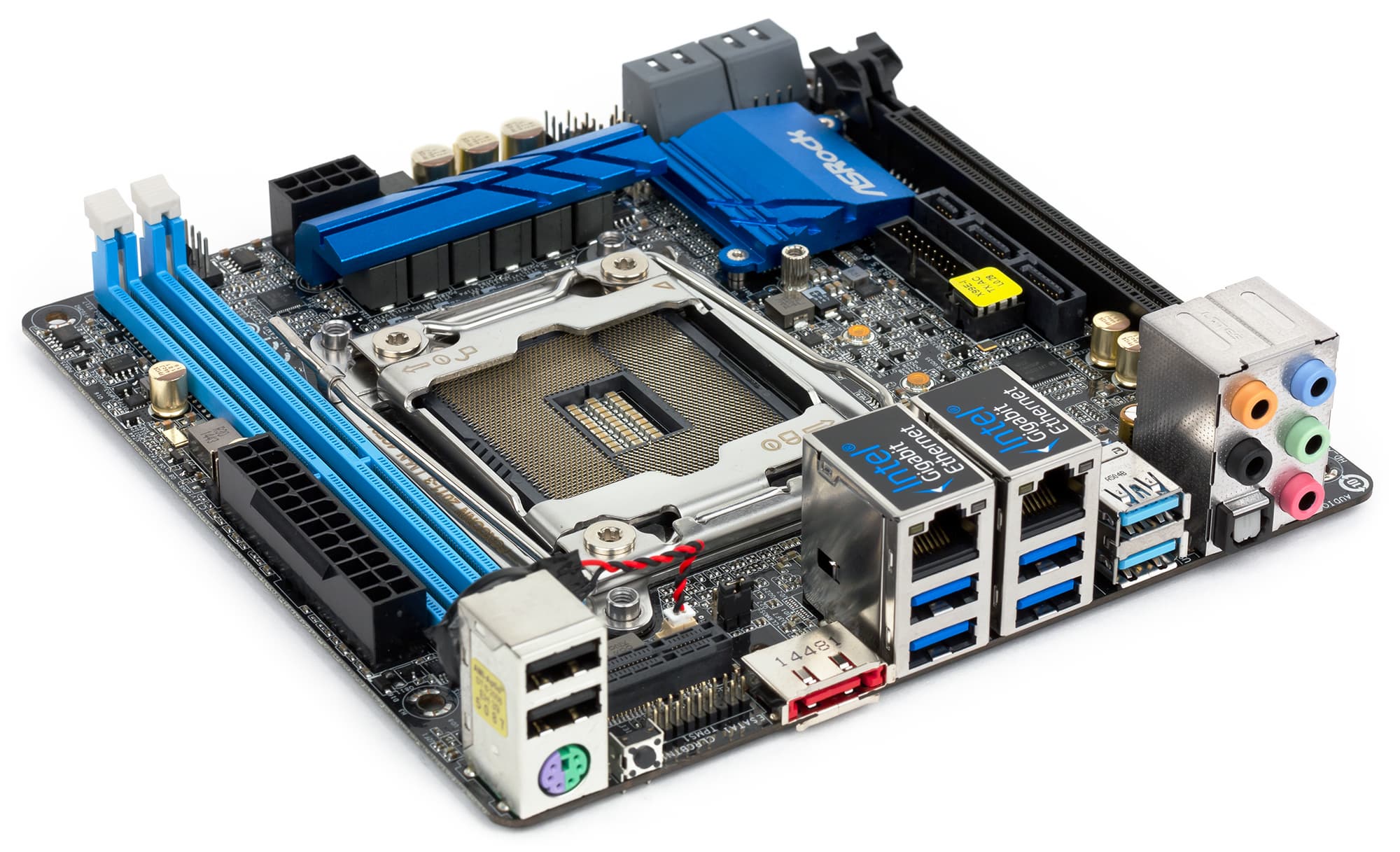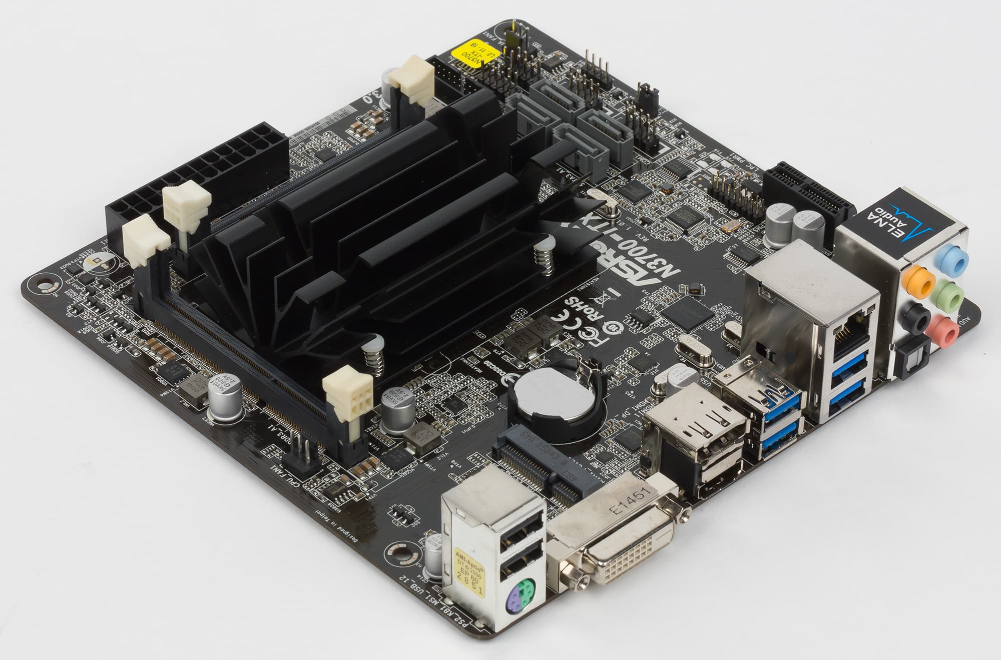 Тем не менее, сохраняются все те же крепежные отверстия, да и задняя панель с портами имеет стандартную же ширину — так что с соответствующей заглушкой плату можно установить даже в полноразмерный АТХ-корпус. Но не нужно, поскольку эти платы также не рассчитаны на работу со стандартными АТХ-блоками питания (хотя могут их и поддерживать) — слишком уж у последних много всяких кабелей, так что даже если сам БП маленький, нет смысла с малой толщиной огород городить: не поместятся. В итоге такие платы ориентированы на внешние БП, аналогичные ноутбучным. Также в них применяются ноутбучные модули памяти SO-DIMM, устанавливаемые параллельно плате (из-за требований к максимальной высоте), и привычные по тем же ноутбукам слоты расширения типа Mini-PCIe, mSATA и M.2. В общем, платформа похожа на ноутбучную, но может использовать любые процессоры — в том числе и настольные (или серверные), устанавливаемые в сокет. Расположение последнего в этих платах тоже стандартизовано, что позволяет использовать объединенные с корпусом, а не отдельные системы охлаждения. Это является особенно актуальным с учетом того, что полноценный «большой» радиатор над процессором тоже не помещается из-за ограничений на высоту, так что все равно имеет смысл тепло снимать и отводить куда-то при помощи тепловых трубок. В общем, получился хороший формат для каких-нибудь моноблоков и прочих встроенных решений.