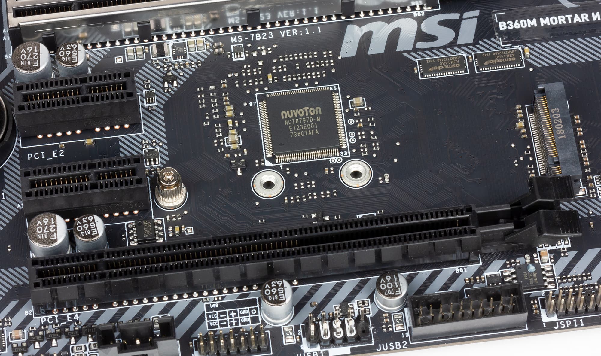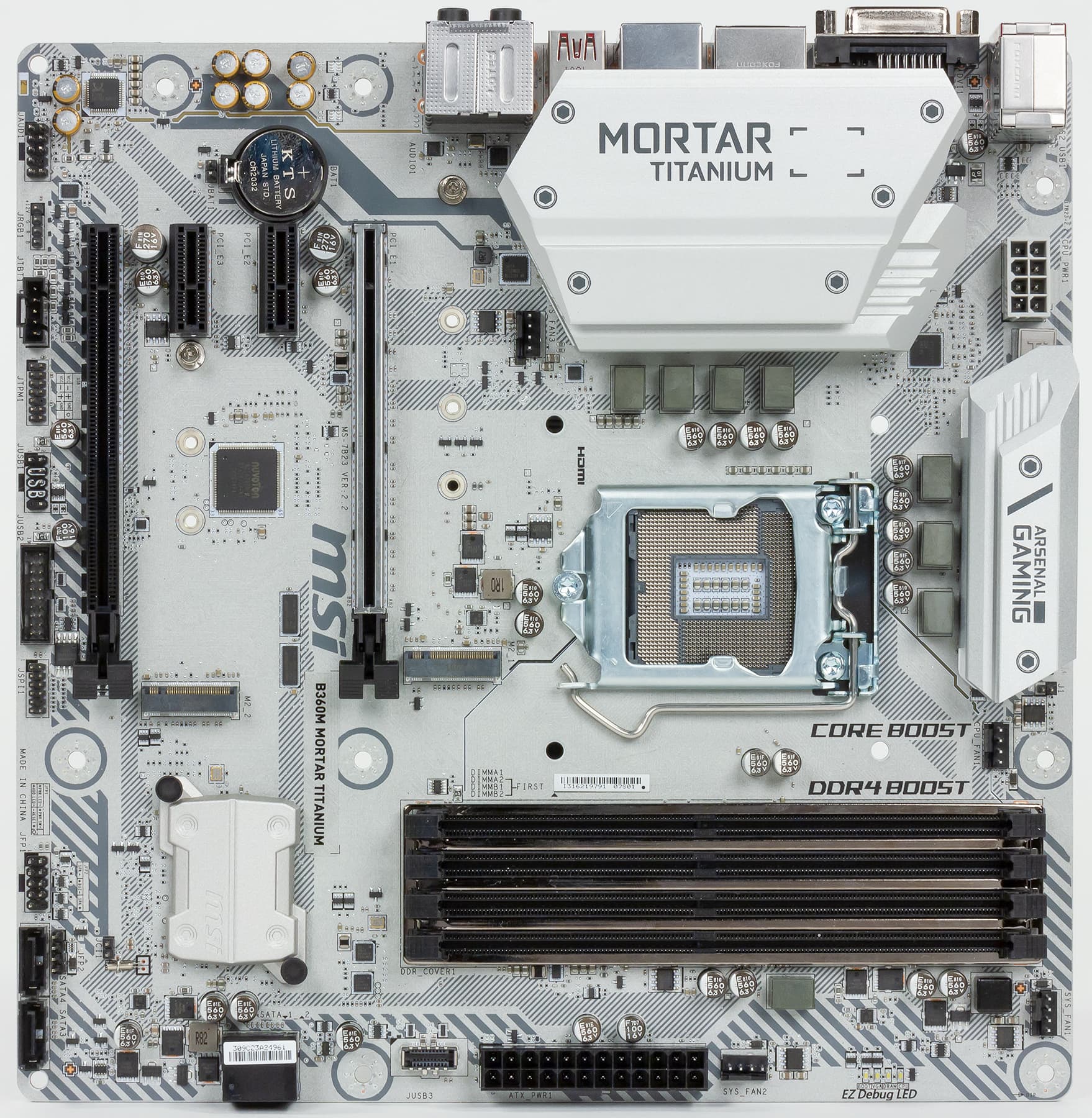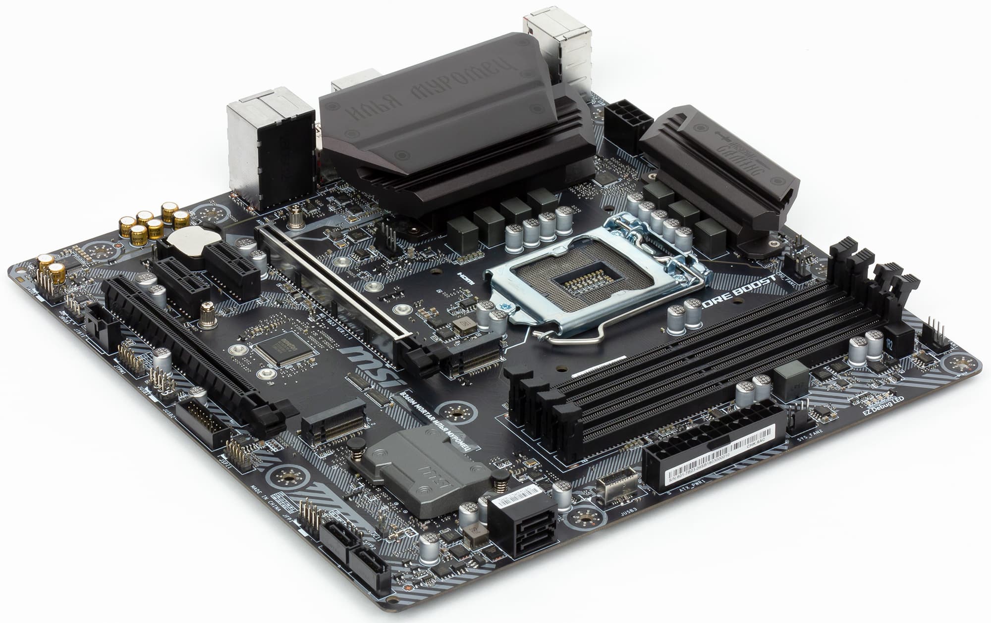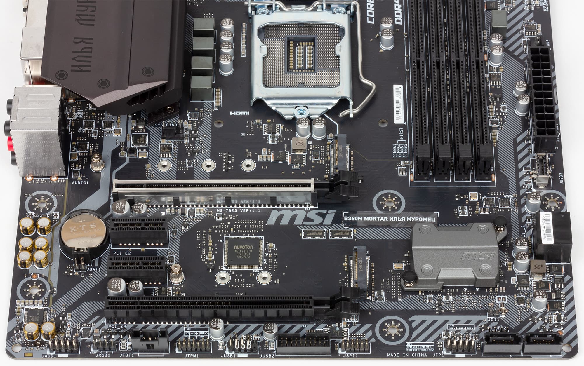 Заодно приведем и фотографию платы MSI B360M Mortar Titanium, дабы читатель смог убедиться в их полной идентичности.