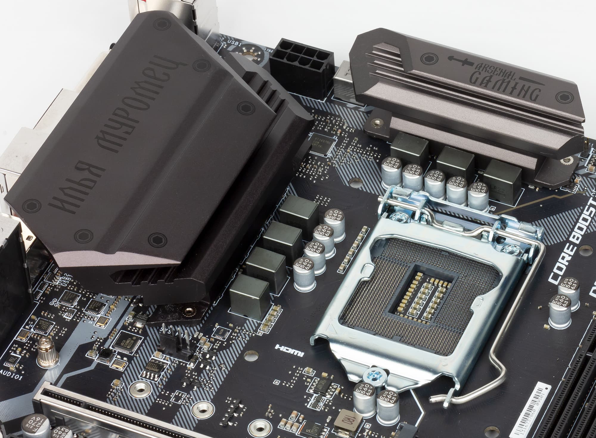Как уже отмечалось, в ассортименте компании MSI есть и полный аналог платы MSI B360M Mortar Илья Муромец, который называется MSI B360M Mortar Titanium. То есть плата MSI B360M Mortar Titanium продается по всему миру, а вот MSI B360M Mortar Илья Муромец — это перекрашенный клон платы MSI B360M Mortar Titanium, который ориентирован на российский рынок. Кроме расцветки, единственное отличие в том, что в комплект платы MSI B360M Mortar Илья Муромец вложен коврик с изображением Ильи Муромца. Но если коврик не критичен, то нет никакой разницы, какую именно плату выбрать.