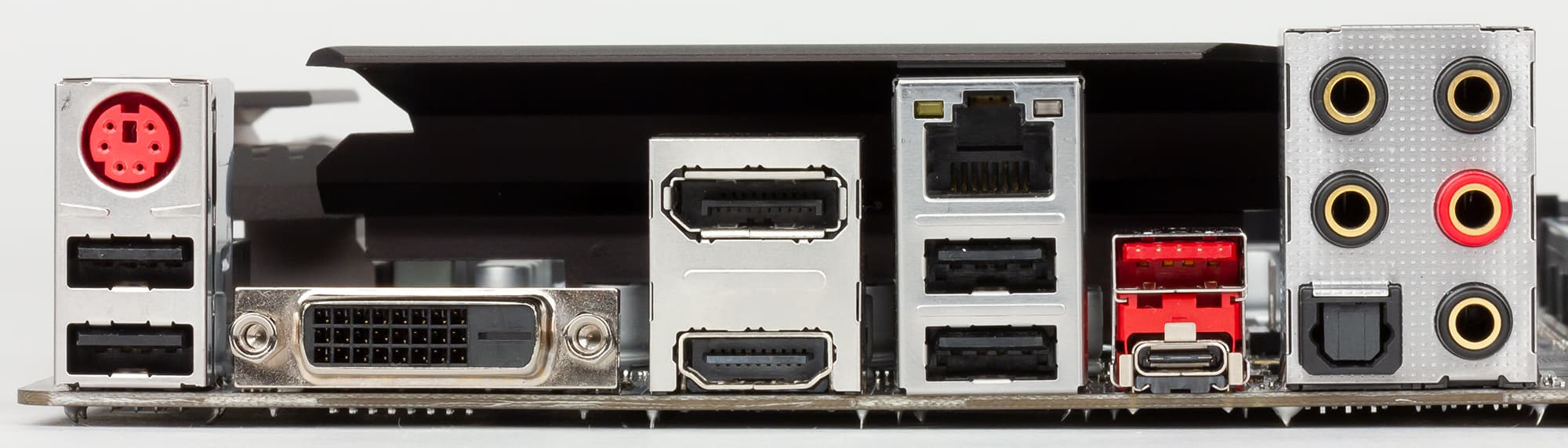 | Разъемы на задней панели | 1 × USB 3.1 (Type-A) 1 × USB 3.1 (Type-С) 4 × USB 2.0 1 × HDMI 1 × DVI-D 1 × DisplayPort 1 × RJ-45 1 × PS/2 1 × S/PDIF (оптический) 5 аудиоразъемов типа миниджек (3,5 мм) |