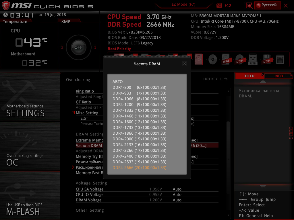 Начнем с памяти. Максимальная частота памяти, которую можно задать, составляет 2666 МГц, как, собственно, и должно быть.
