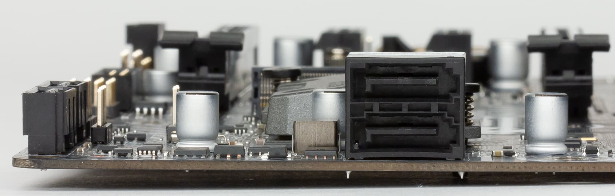 Два SATA-порта на плате сделаны горизонтальными, а еще два — вертикальными.
