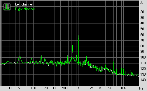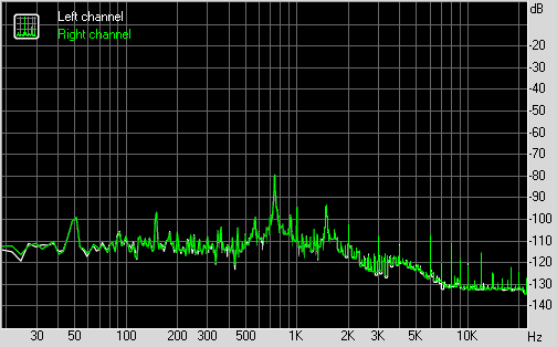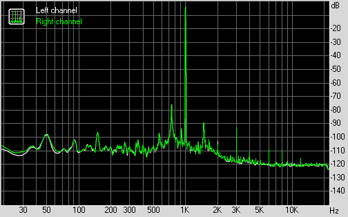 Для тестирования выходного звукового тракта, предназначенного для подключения наушников или внешней акустики, мы использовали внешнюю звуковую карту Creative E-MU 0204 USB в сочетании с утилитой RightMark Audio Analyzer 6.3.0. Тестирование проводилось для режима стерео, 24-бит/44,1 кГц. По результатам тестирования аудиотракт на плате MSI B360M Mortar Илья Муромец получил оценку «Хорошо».