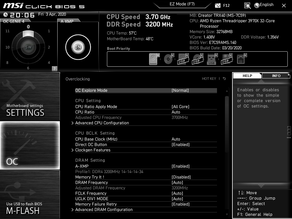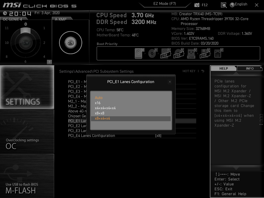 Итак, в тестовом стенде у нас MSI Creator TRX40.