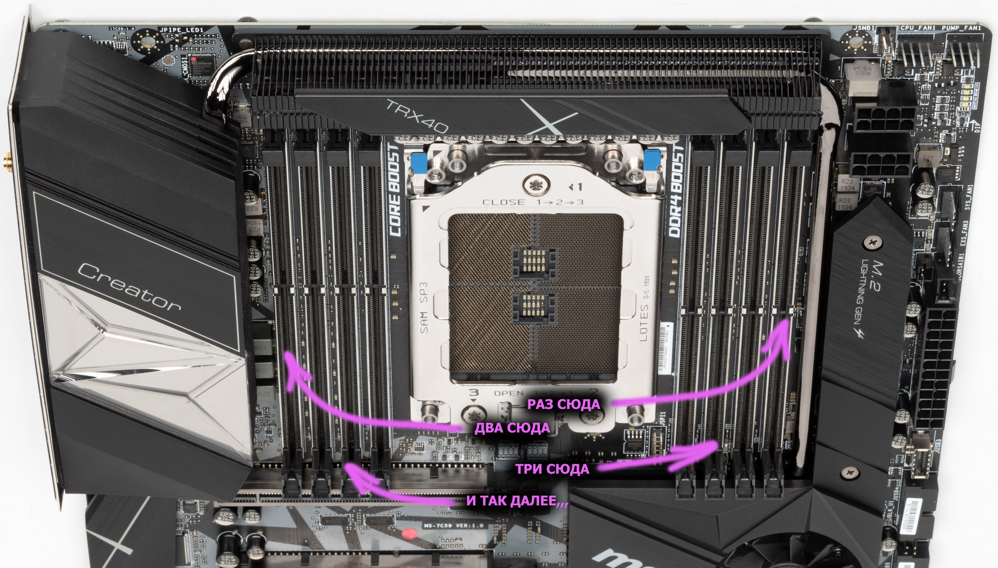Еще раз надо напомнить, что MSI Creator TRX40 поддерживает процессоры AMD Ryzen Threadripper 3-го поколений, выполненные под разъем (сокет) sTR4X.