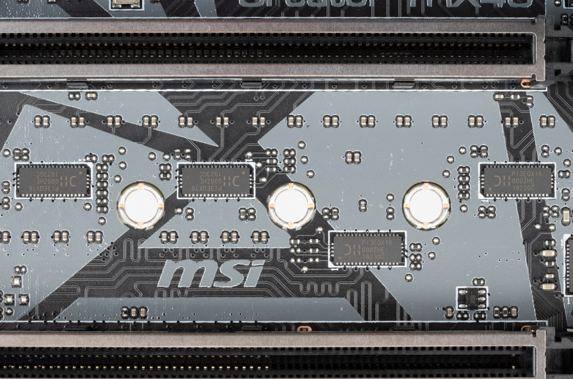 Учитывая, что слот PCI-Ex16_3 требуется переключать, да и странное его взаимодействие с M.2_1, на плате имеются мультиплексоры.