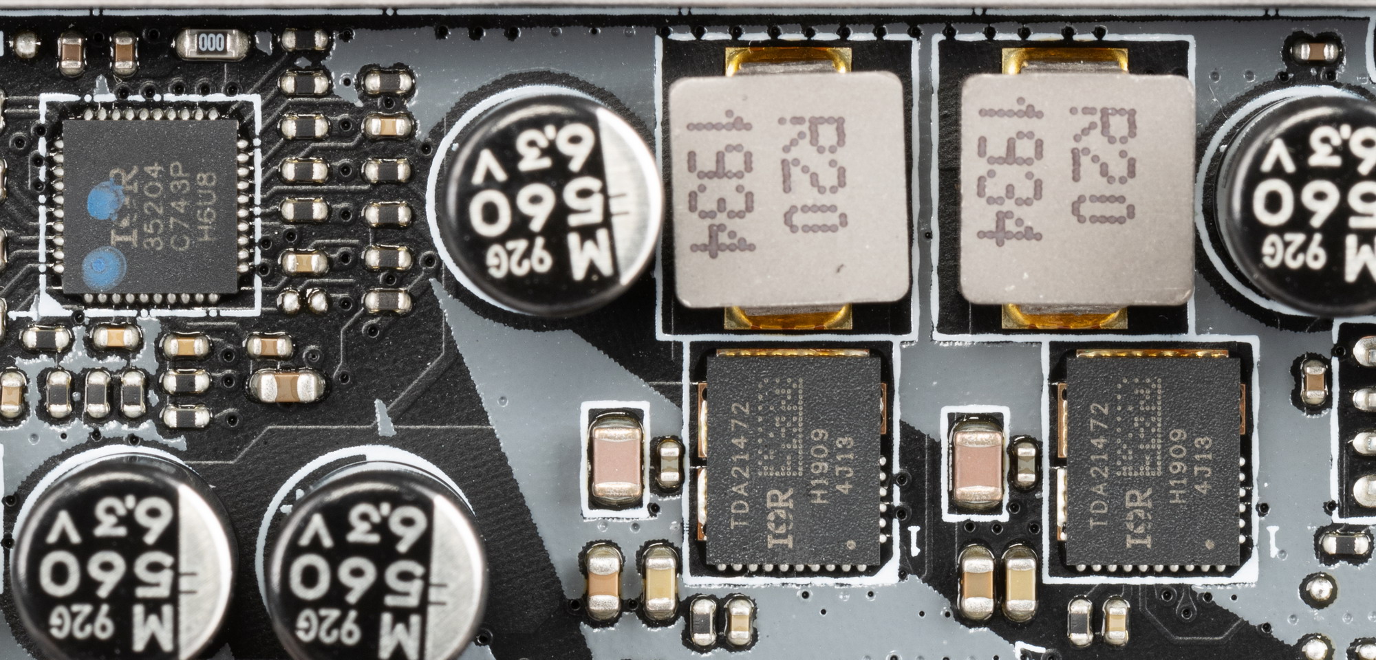 SoC имеет свою 3х-фазную схему питания с теми же мосфетами. А вот ШИМ-контроллер уже IR35204 (по сути от того же Infineon).