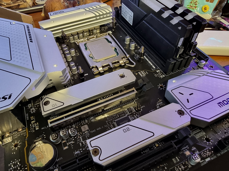 12е поколение процессоров добавляет к этому набору еще 20 линий PCIe, при этом 16 линий (расходуемые на слоты PCIe x16) версии PCIe 5.0, оставшиеся 4 линии PCIe 4.0 идут на М.2 слот. Процессоры 12ххх умеют поддерживать как DDR5, так и DDR4, так что производители матплат вольны выпускать продукты как с DDR5, так и с DDR4 слотами. Напомню про процессорный сокет LGA 1700, так что взаимной совместимости с процессорами 11го и 10го поколений нет.