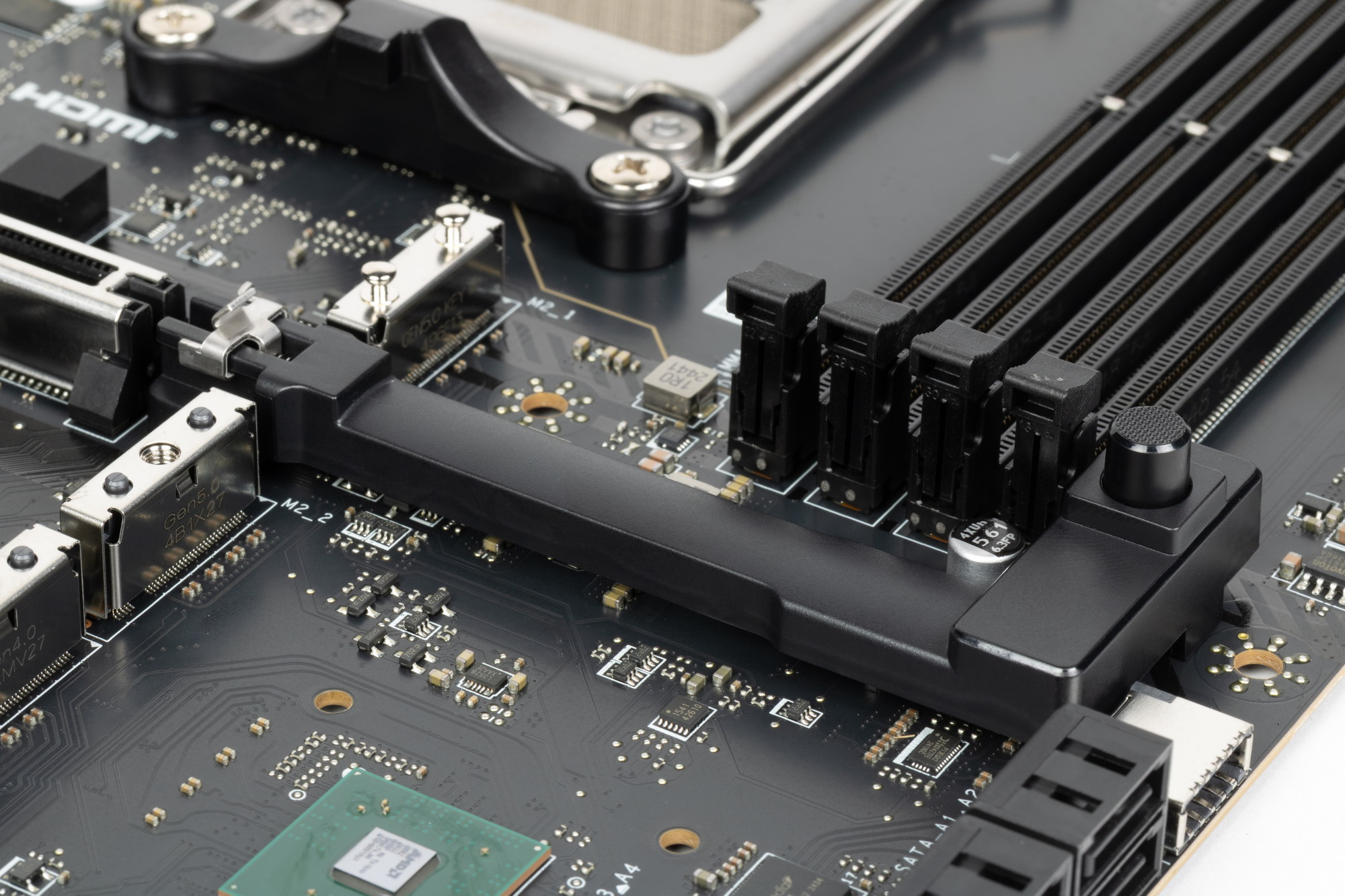 У всех слотов M.2 имеется удобный способ крепления накопителей через установленные на стойках поворотные замки.