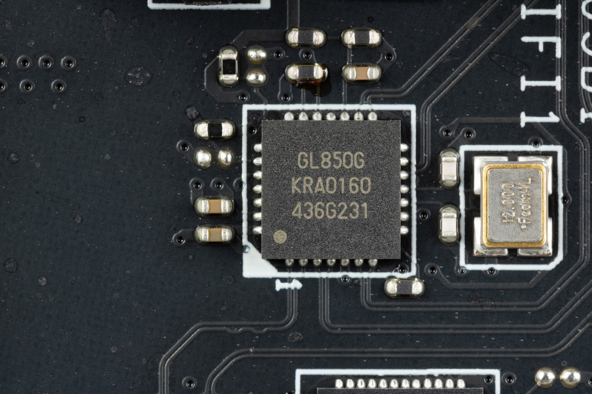 - 8 портов USB 2.0/1.1: 4 реализованы через контроллер Genesys Logic GL850G (на него потрачена 1 линия USB 2.0 от B850) и представлены на задней панели портами Type-A (черного цвета); еще 4 реализованы через B850 и представлены двумя внутренними разъемами на материнской плате (каждый на 2 порта);