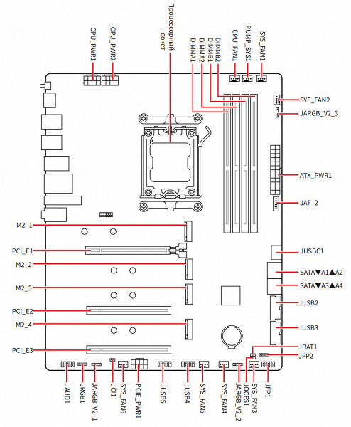 Третий и четвертый слоты M.2 (M.2_3, M.2_4) получают данные от чипсета B850, а первые два — от CPU, при этом M.2_1/2 получают PCIe 5.0, а M.2_3/4 получают PCIe 4.0.