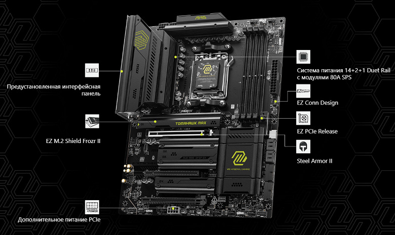 Плата MSI поддерживает процессоры AMD поколений 7xxx/8xxx/9xxx, выполненные под разъем (сокет) AM5.