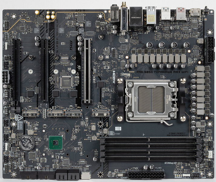 MSI MAG B850 Tomahawk Max WiFi — сравнительно недорогая материнская плата на чипсете среднего уровня для платформы AMD AM5. На момент публикации обзора ее розничная стоимость начиналась от 25 тысяч рублей. Для платы заявлены повышенные надежность и стабильность работы, она имеет 8 слоев с повышенным содержанием меди (экранирование серверного класса).