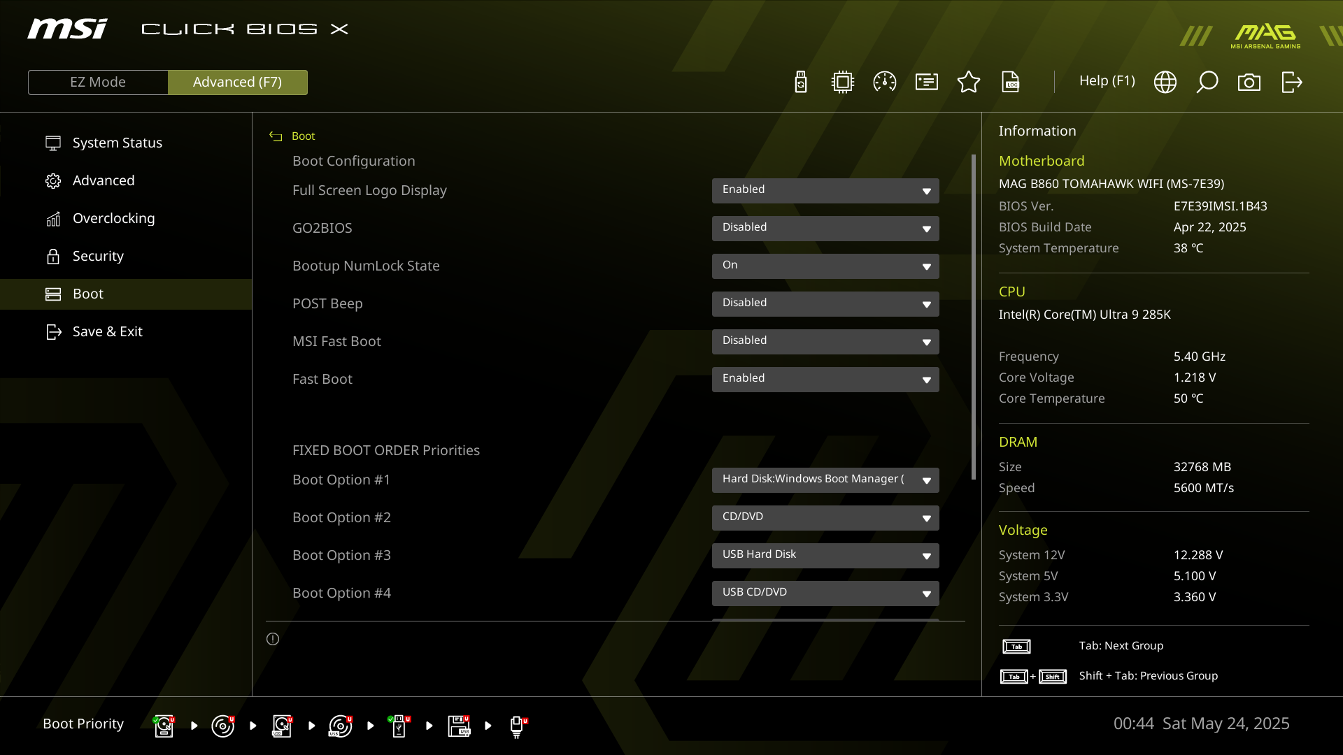 | Сетевые контроллеры | 1 × Intel Killer E5000B Ethernet 5 Гбит/с 1 × Intel Dual Band Wireless BE200 (Wi-Fi7 802.11a/b/g/n/ac/ax/be (2,4/5/6 ГГц) + Bluetooth 5.4) |