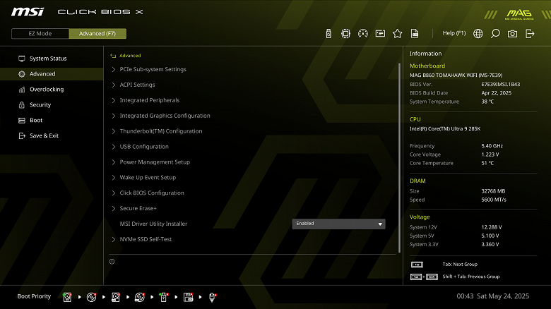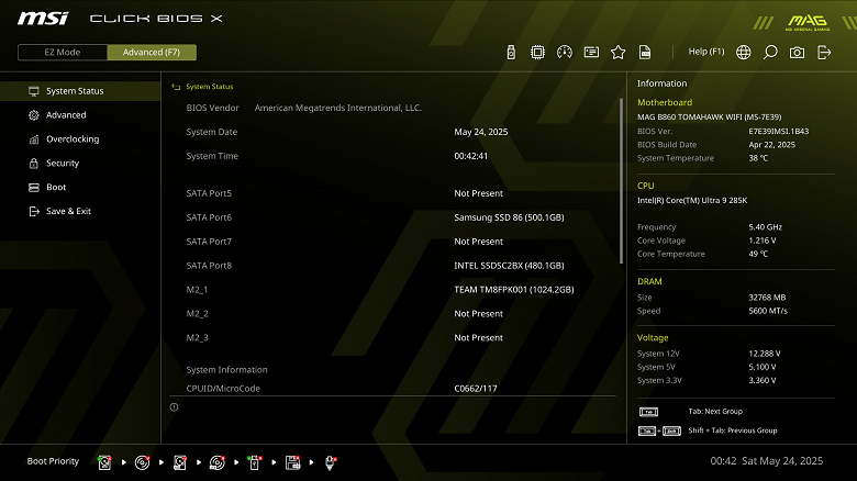 MSI MAG B860 Tomahawk WiFi поддерживает процессоры Intel Core Ultra 2xx, выполненные под разъем (сокет) LGA1851.