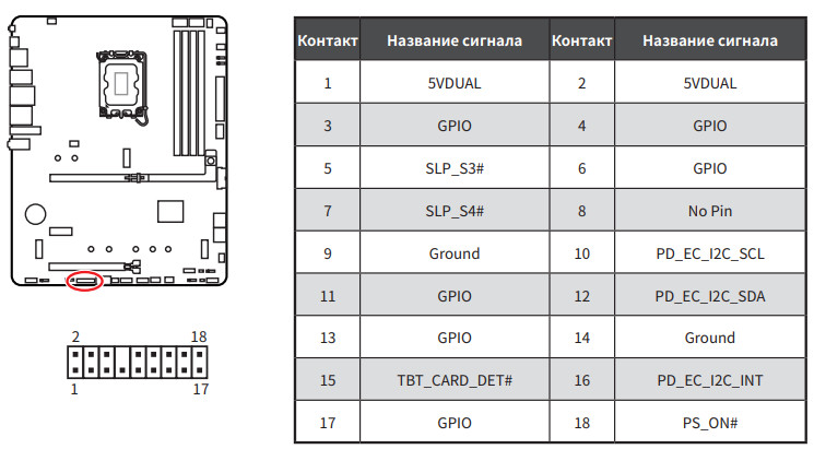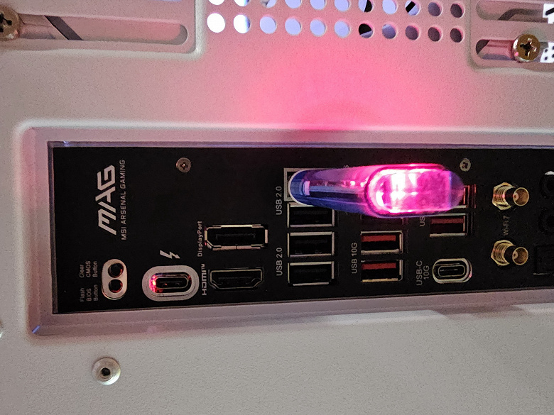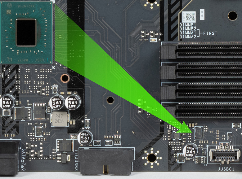 Для устойчивой скоростной передачи по протоколам USB4/TB4 на матплате имеется усилитель (ре-драйвер) от той же компании Intel. Реализован 1 порт Type-C на задней панели.