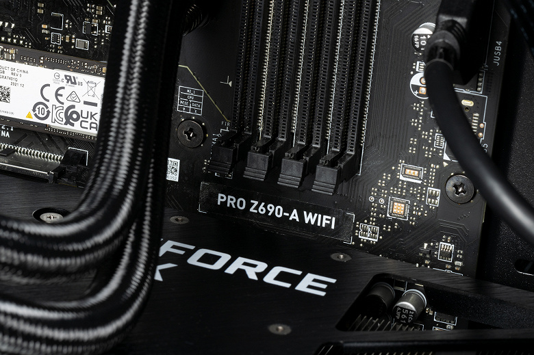 Формально — 12th, реально сюда со временем могут прийти и процессоры тринадцатого поколения, благо друг с другом они совместимы, а системная плата MSI Pro Z690-A WIFI спроектирована с большим запасом. Фактически принадлежность к бизнес-линейке «выдает» разве что достаточно слабый звуковой кодек, но любители качественного звука все равно давно либо ушли на HDMI, либо пользуются внешними USB-интерфейсами. Все остальные возможности, включая и систему питания процессора — на уровне. И интерфейсов это тоже касается — нет разве что Thunderbolt, но он так и не сумел закрепиться в настольных компьютерах.
