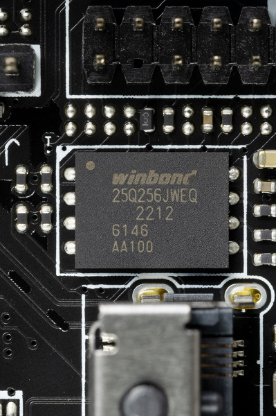 Материнская плата оснащена средствами связи хорошо. Имеется скоростной Ethernet-контроллер Intel i225-V, способный работать по стандарту 2,5 Гбит/с.