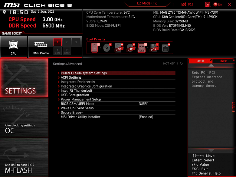 MSI MAG Z790 Tomahawk WiFi поддерживает процессоры Intel Core 12/13-го поколений, выполненные под разъем (сокет) LGA1700.