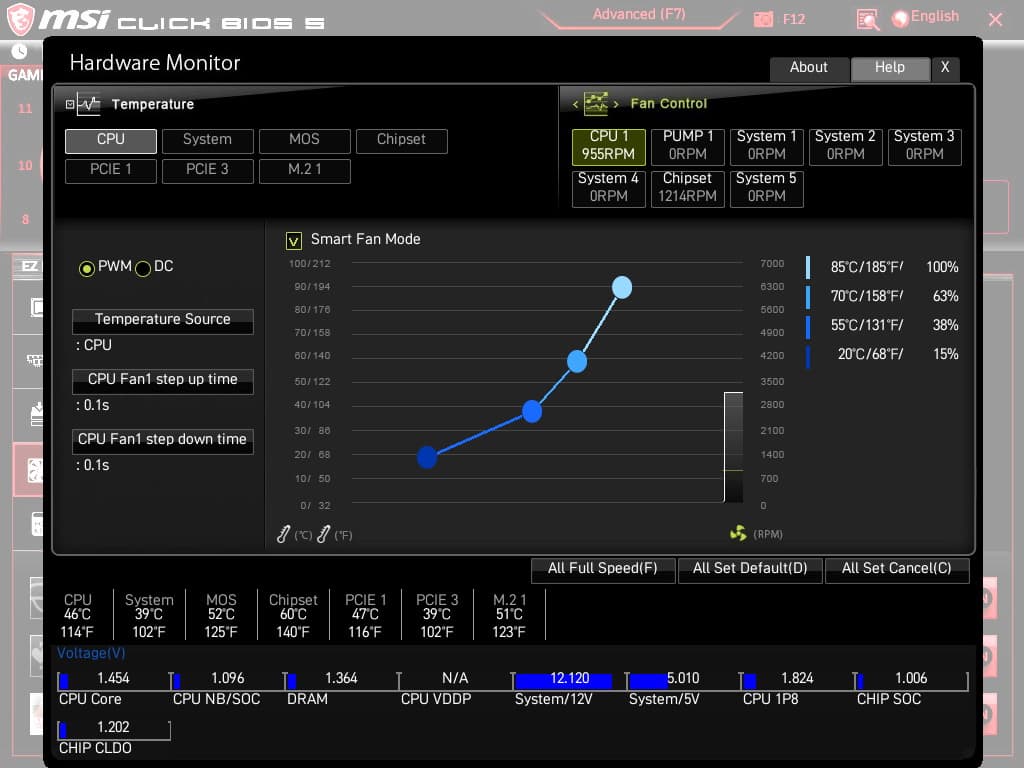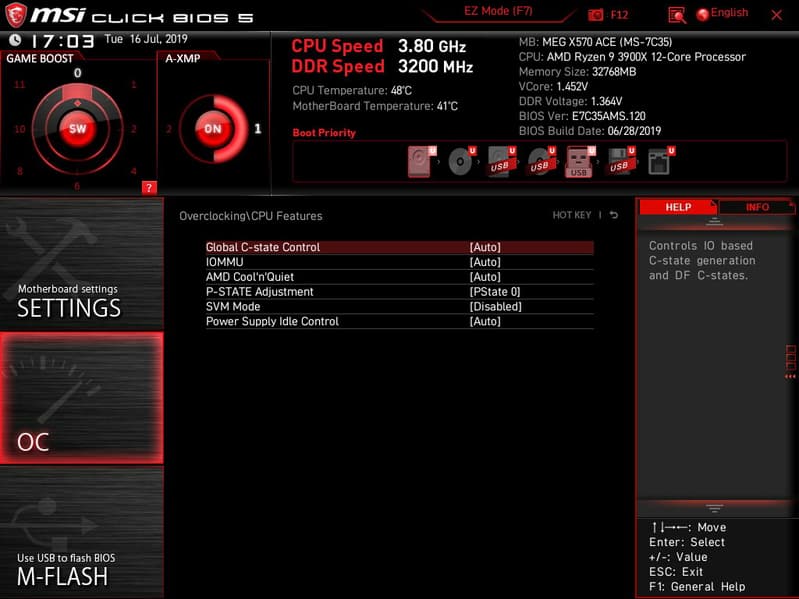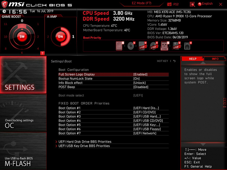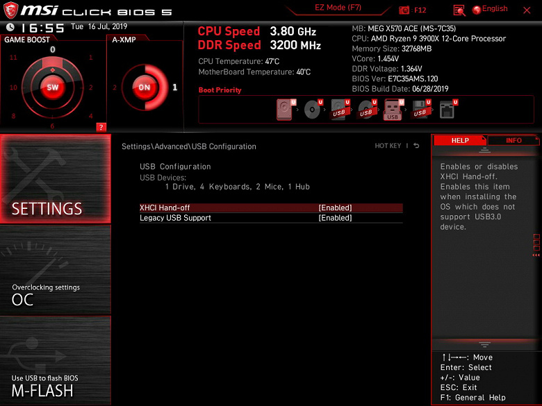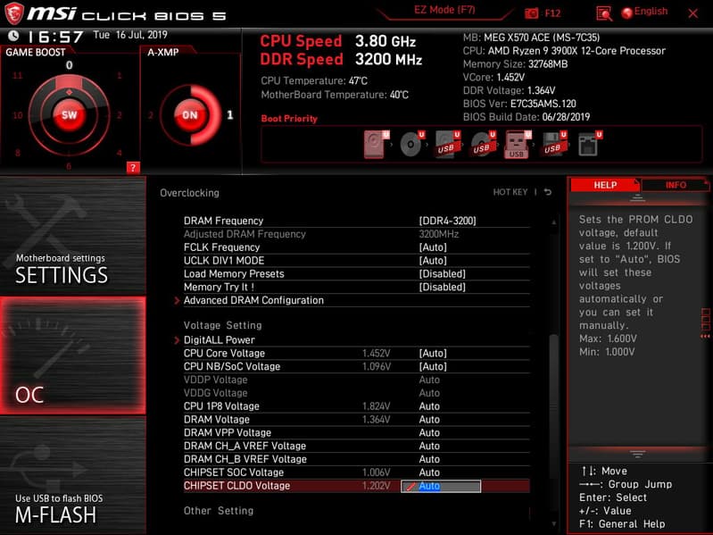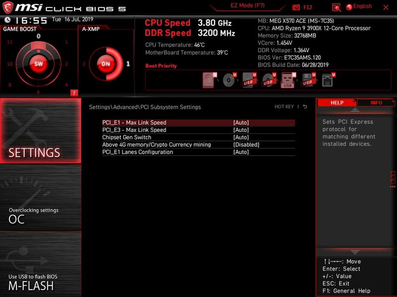 Поэтому отмечаем, что возможности MSI MEG X570 Ace в плане охлаждения реализованы отлично! Еще одним плюсом является то, что все вентиляторы могут управляться как через ШИМ, так и банальным изменением напряжения/тока. Для этого можно воспользоваться настройками UEFI/BIOS.