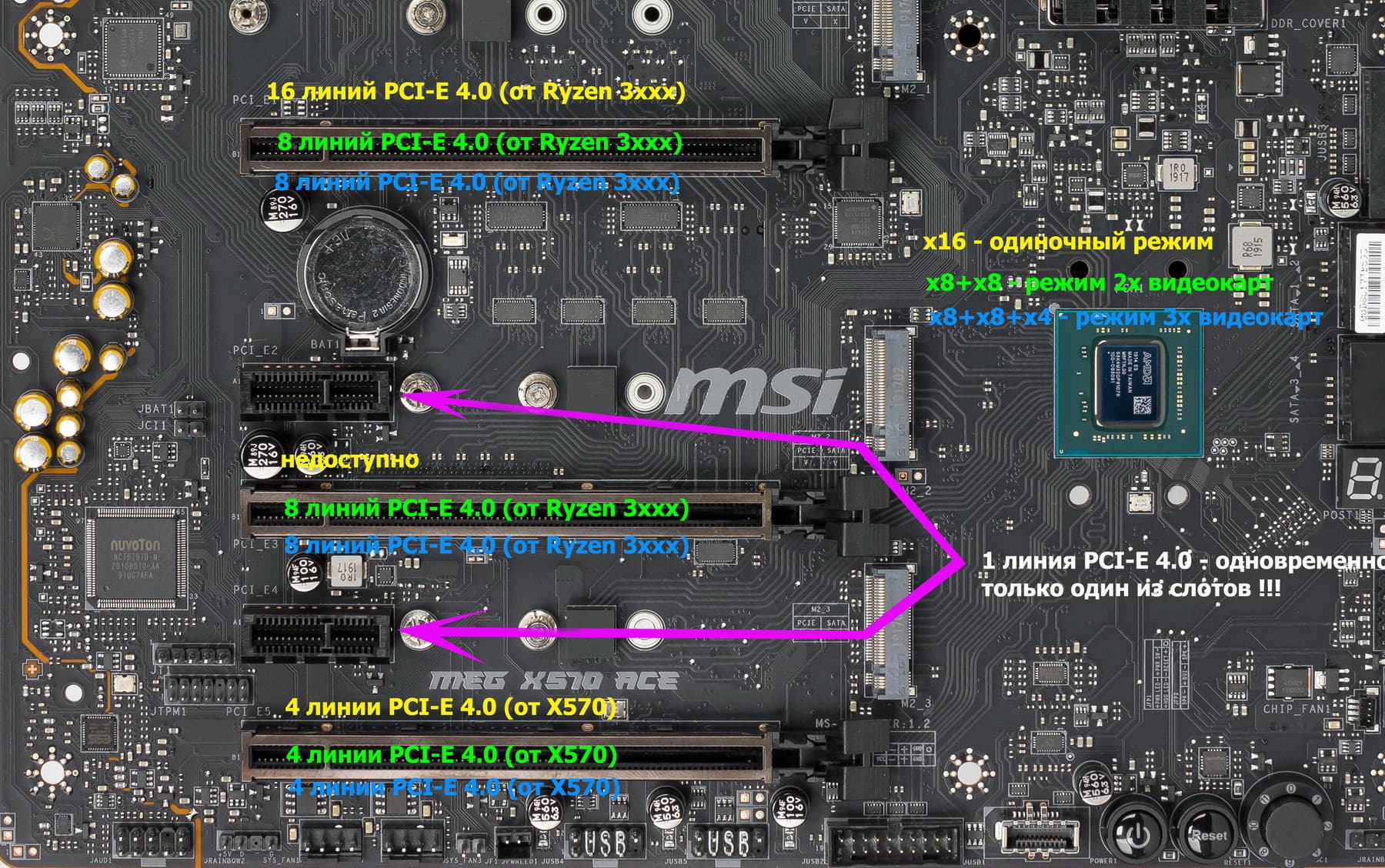 Начнем со слотов PCI-E.