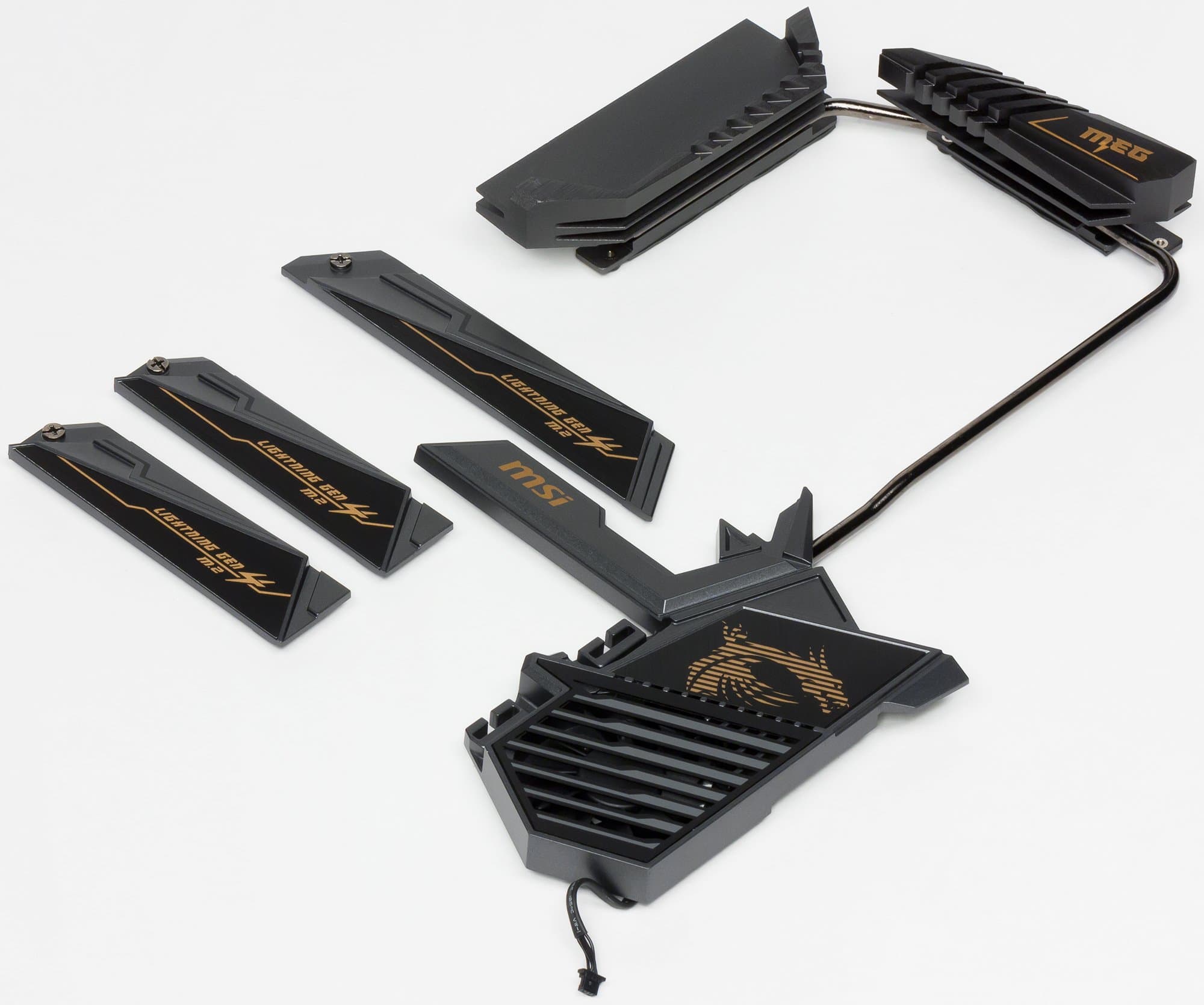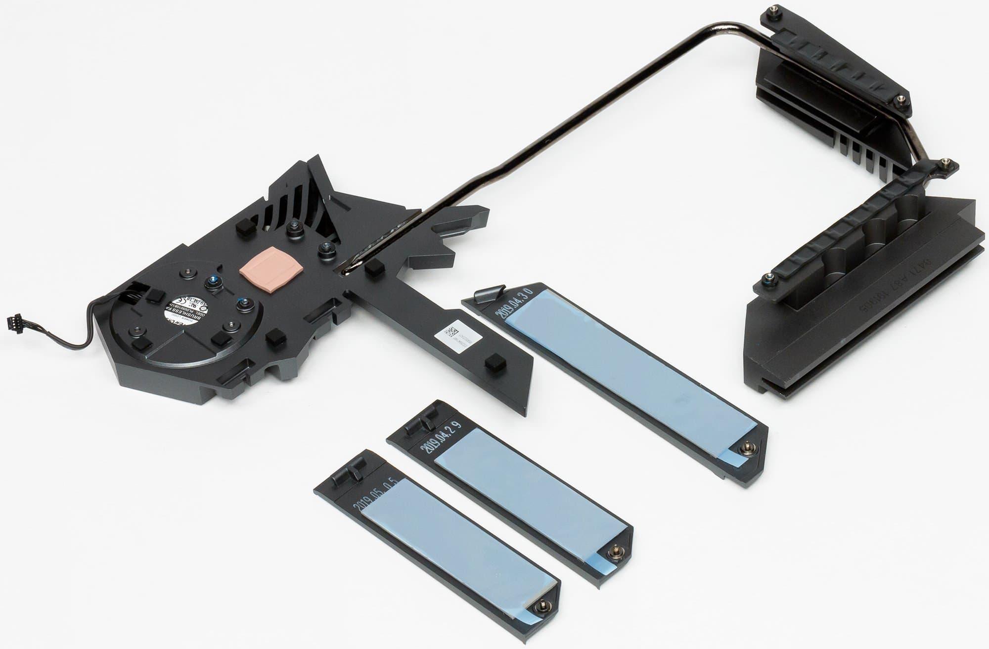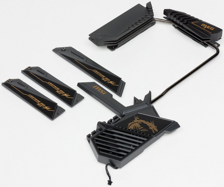 Для модулей M.2, как я уже выше отмечал, есть свои три радиатора с термоинтерфейсами. Они крепятся к большому чипсетному радиатору и также принимают участие в общей схеме охлаждения.