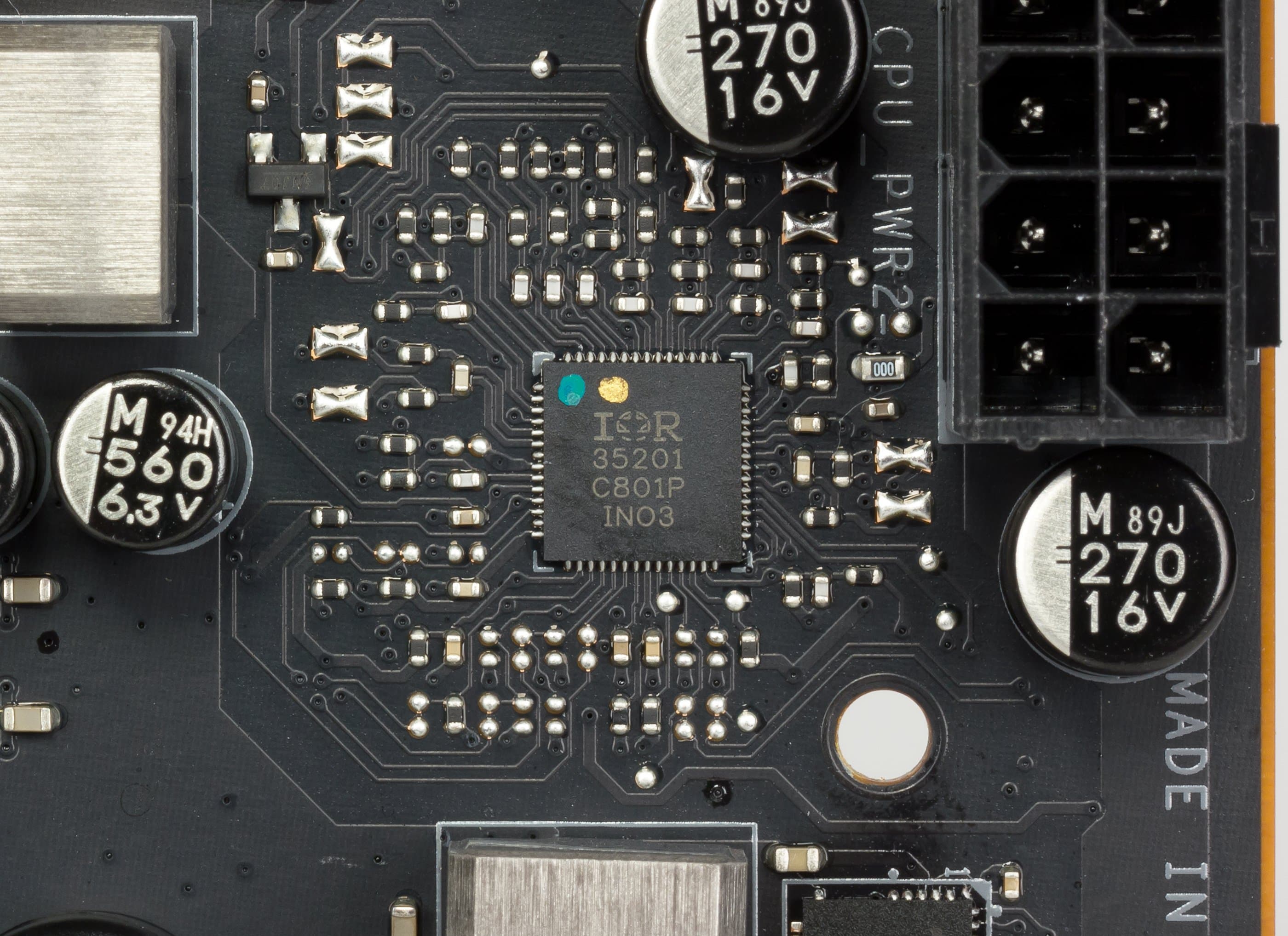 Управляет фазами цифровой контроллер IR35201 (от компании International Rectifier, которая сейчас является подразделением Infineon), а он вообще-то рассчитан всего на 8 фаз максимум.