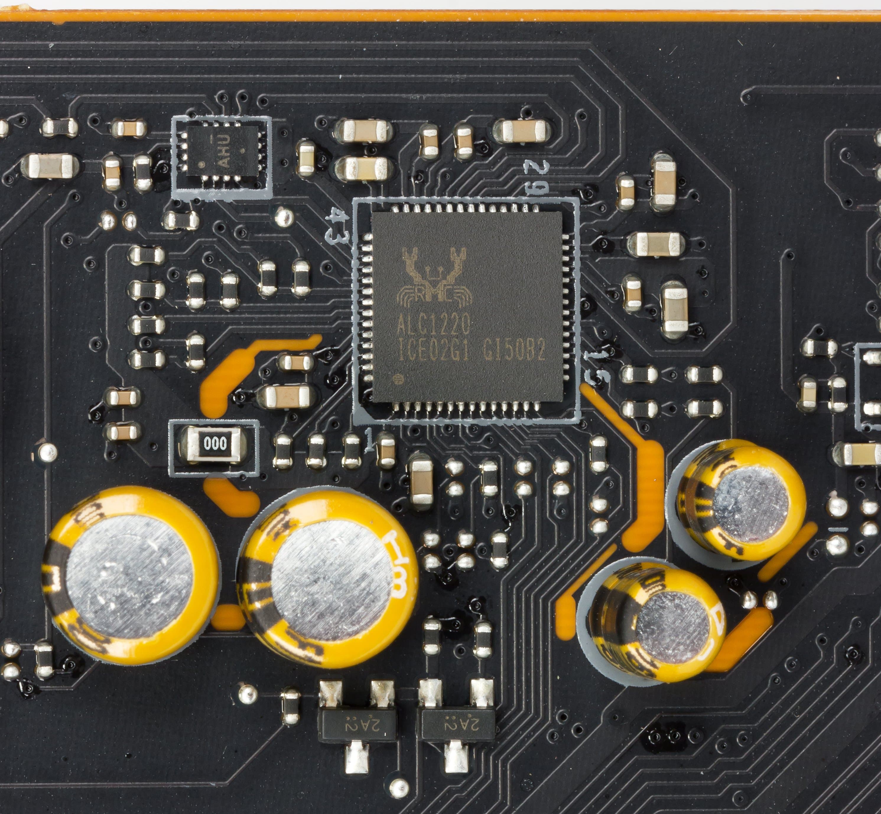 Как и практически во всех современных материнских платах, звуком заведует аудиокодек Realtek ALC1220. Он обеспечивает вывод звука по схемам до 7.1.