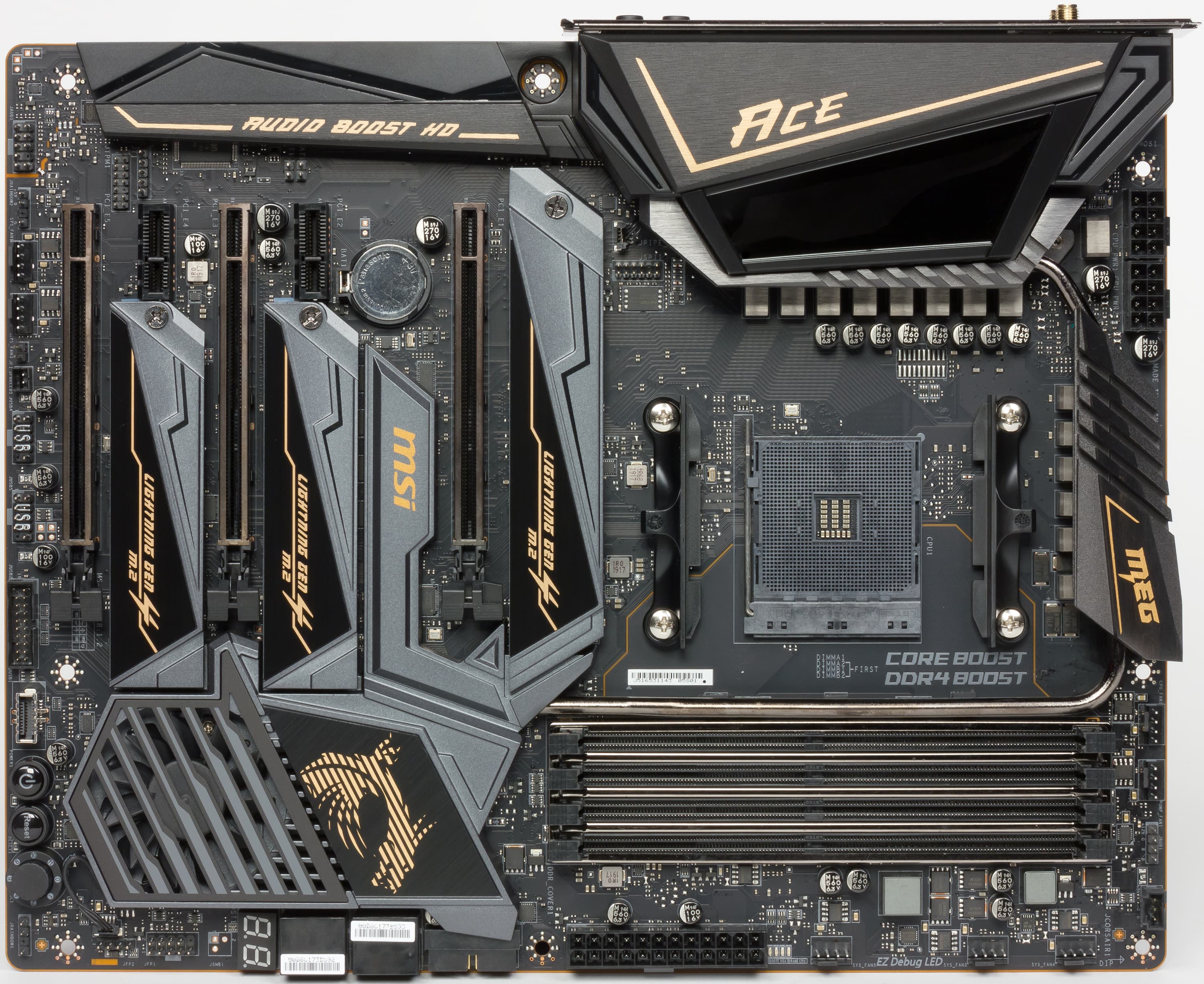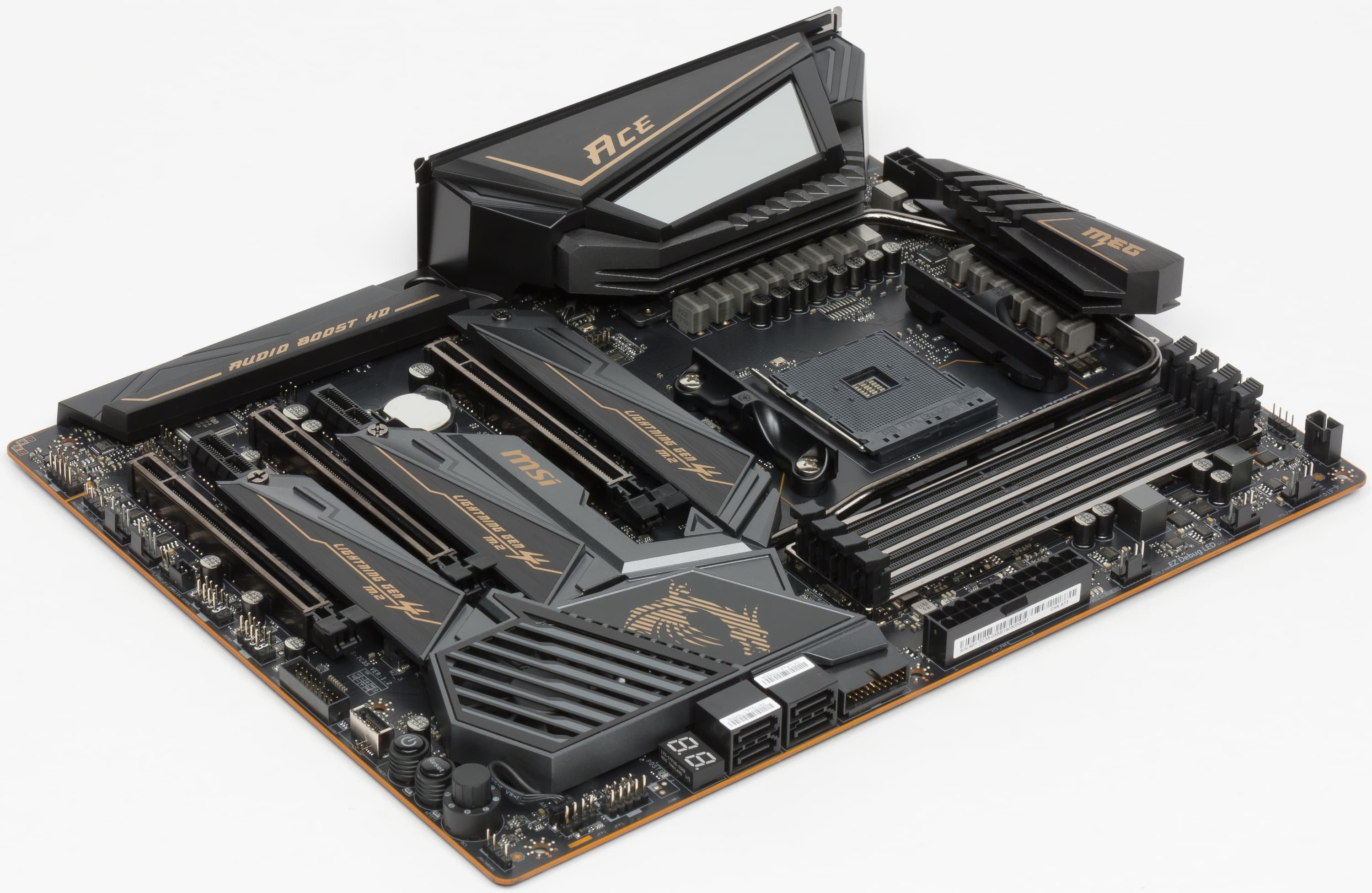 Как известно, компания MSI любит красивые названия, и на сей раз в нашей лаборатории побывало устройство, имеющее в названии слово Ace (в переводе с английского — туз, козырь, ас, первоклассный и т. п.). Вообще, в серию MEG (MSI Enthusiast Gaming) входят продукты, так скажем, очень продвинутые и оснащенные «изюминками». И данная плата не исключение, поэтому ожидаемо, что она будет явно не из дешевых, но и не самой дорогой, поскольку в линейке MEG имеются более топовые продукты с суффиксами Godlike. На момент написания материала эти материнки продавались примерно за 50 тысяч рублей, что крайне дорого даже для топового чипсета. Однако это продукты для энтузиастов.