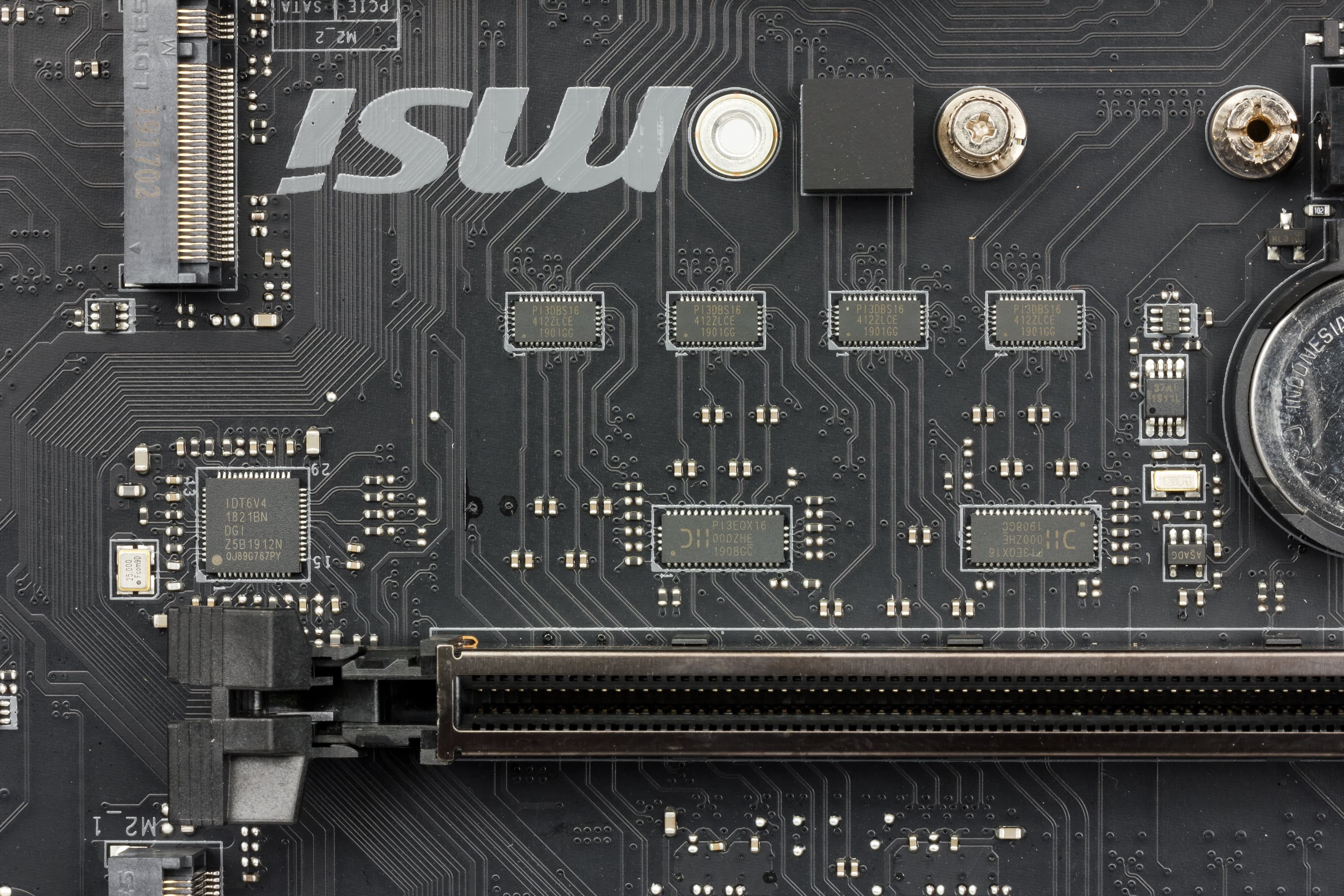 Распределением линий PCI-E между слотами в случае использования более одной видеокарты занимаются мультиплексоры PI3EQX16 от Pericom.