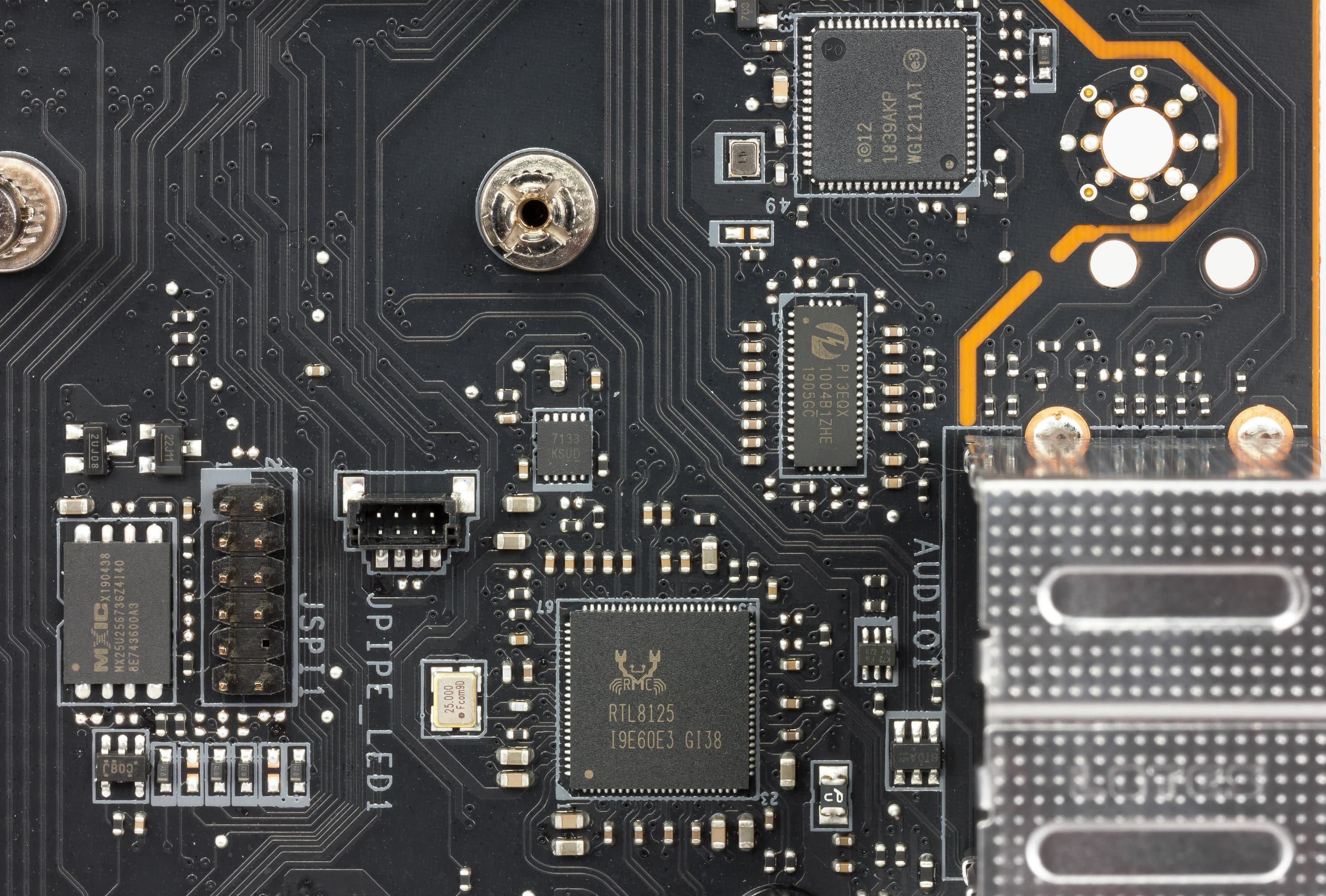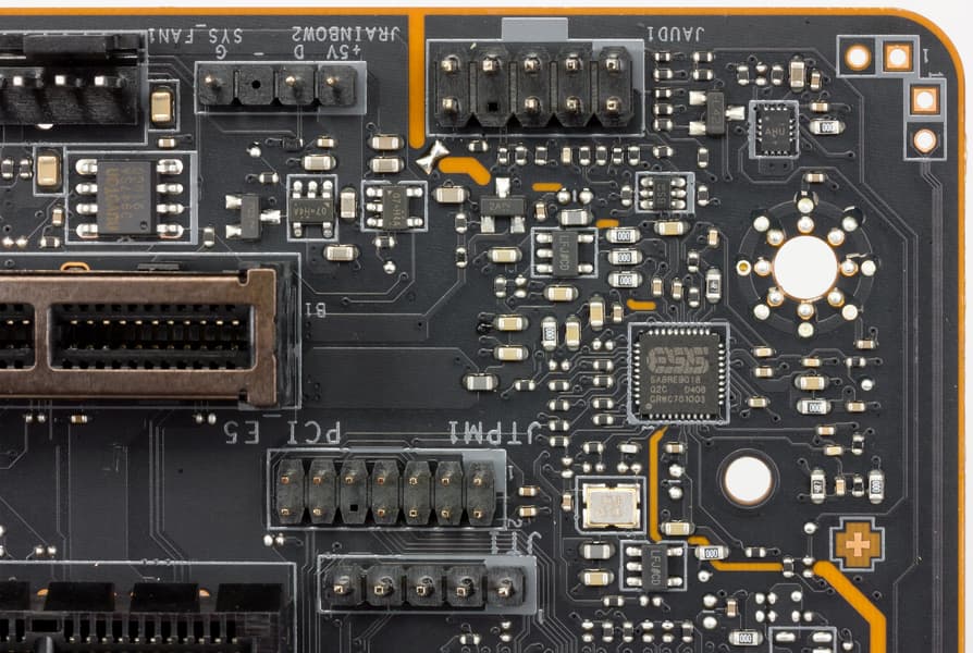 Материнская плата оснащена средствами связи весьма богато. Имеется два Ethernet-контроллера: традиционный гигабитный Intel I211-AT и Realtek RTL8125, способный работать по стандарту 2,5 Gb/s.