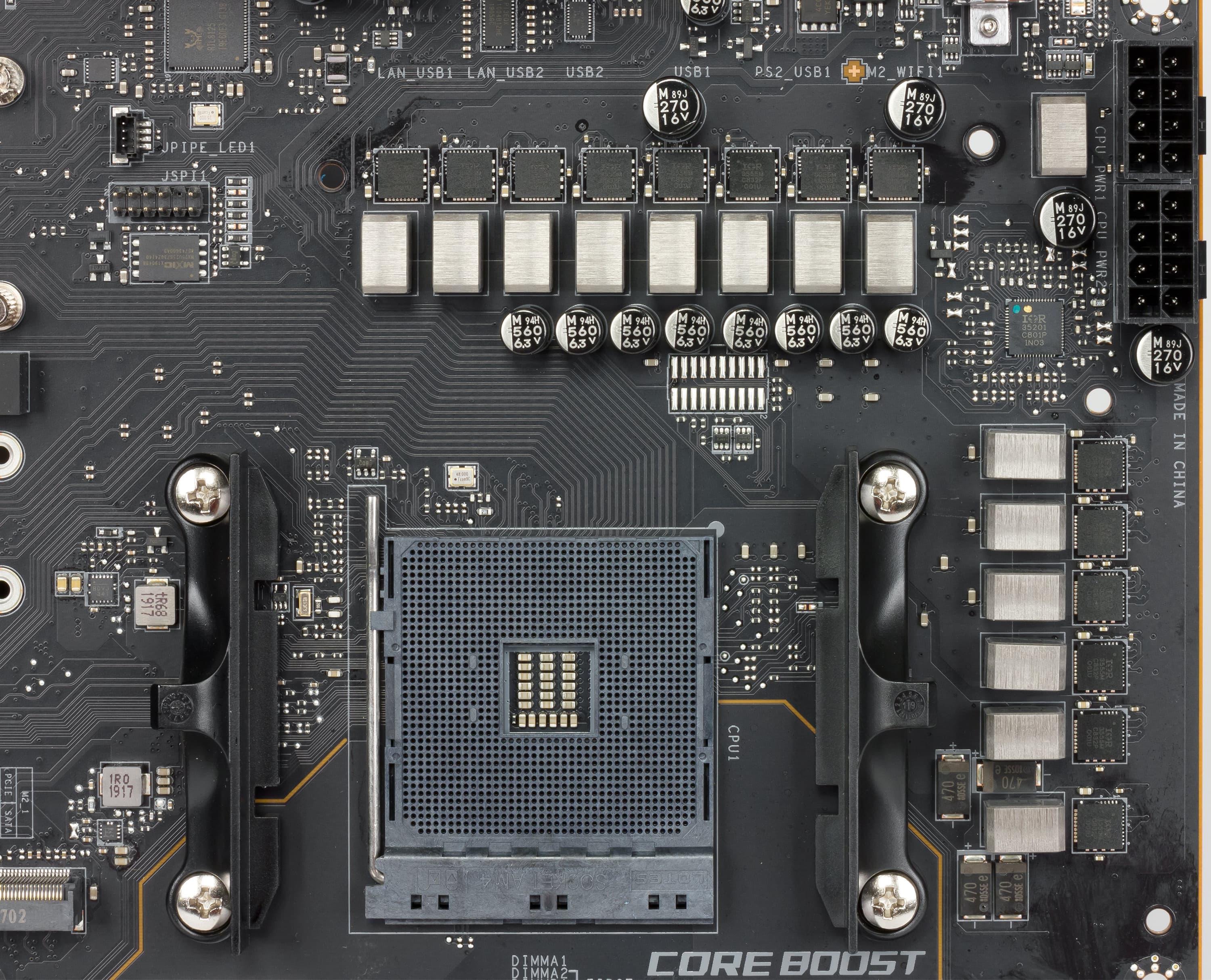 В целом надо сказать, что система питания очень мощная, уже практически на уровне HEDT, и это неудивительно: новые самые топовые процессоры AMD — 12 ядерные (а впереди еще и Ryzen 9 3950X с 16 ядрами!), потребляют очень много, требования к схеме питания очень высокие.