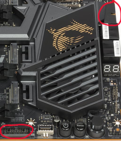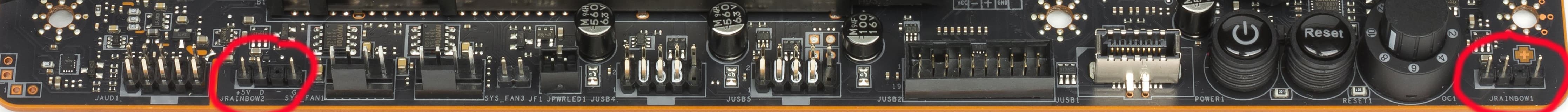 Внизу платы есть два разъема для подключения адресуемой ARGB-подсветки: