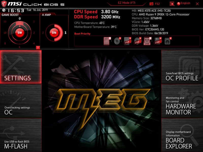 - материнская плата MSI MEG X570 Ace;