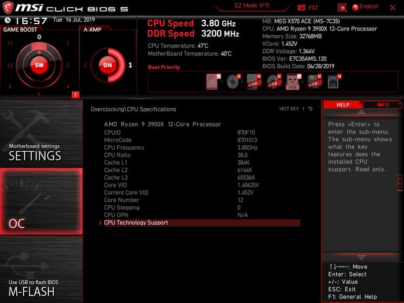Еще раз надо напомнить, что MSI MEG X570 Ace поддерживает процессоры AMD Ryzen 2-го и 3-го поколений, выполненные под разъем (сокет) AM4.