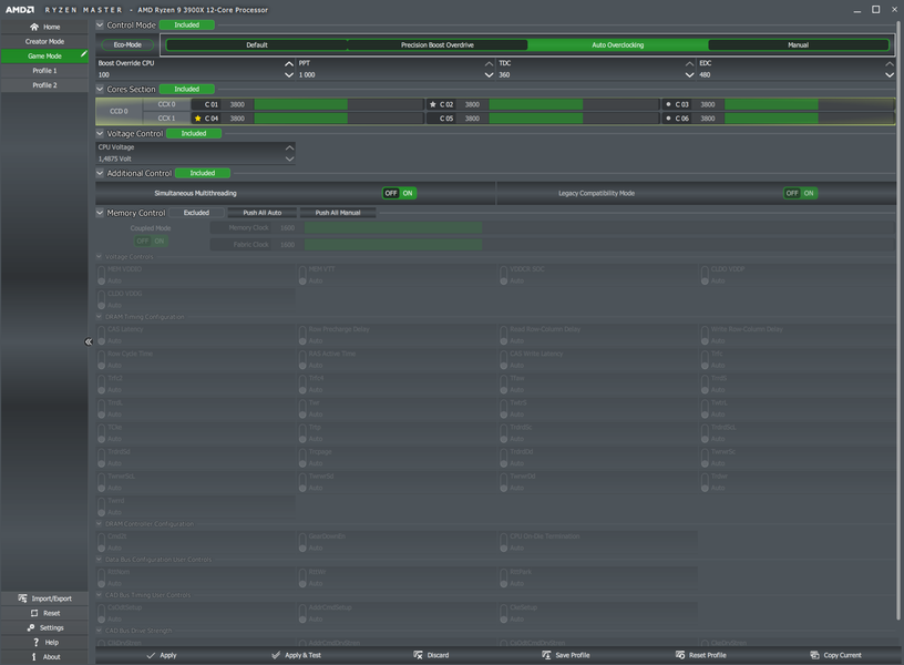 Теперь запустим режим Game Mode в AMD Ryzen Master.
