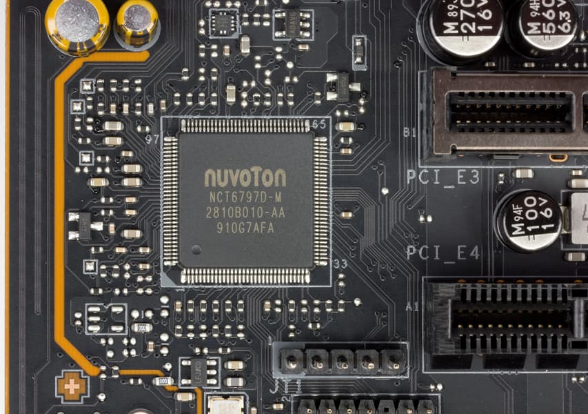 Для всех этих целей (мониторинг, Multi I/O) имеется контроллер NCT67970 от Nuvoton.