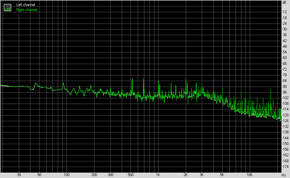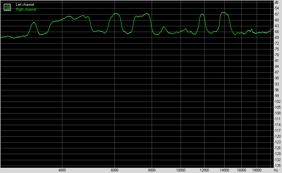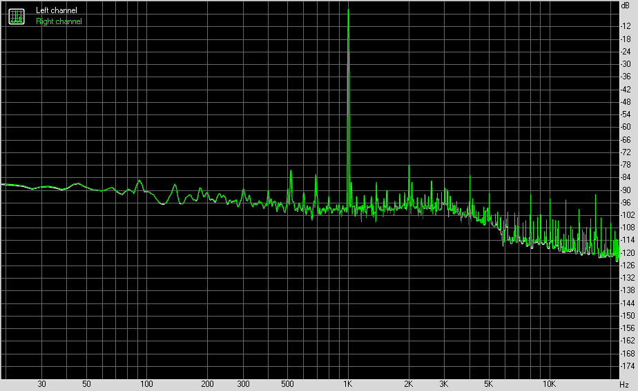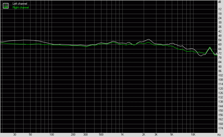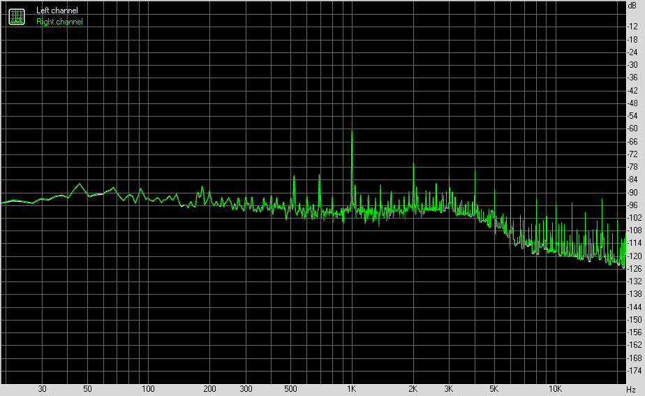 Для тестирования выходного звукового тракта, предназначенного для подключения наушников или внешней акустики, мы использовали внешнюю звуковую карту Creative E-MU 0202 USB в сочетании с утилитой RightMark Audio Analyzer 6.4.5. Тестирование проводилось для режима стерео, 24-бит/44,1 кГц. По результатам тестирования аудиотракт на плате получил оценку «Хорошо».