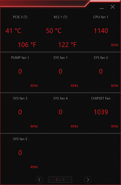 Разработчики из MSI также решили подстраховаться и установить небольшой вентилятор на X570, однако жестко задали режим его включения при нагреве чипсета больше 70 градусов. Если нагрев меньше, то вентилятор выключен.