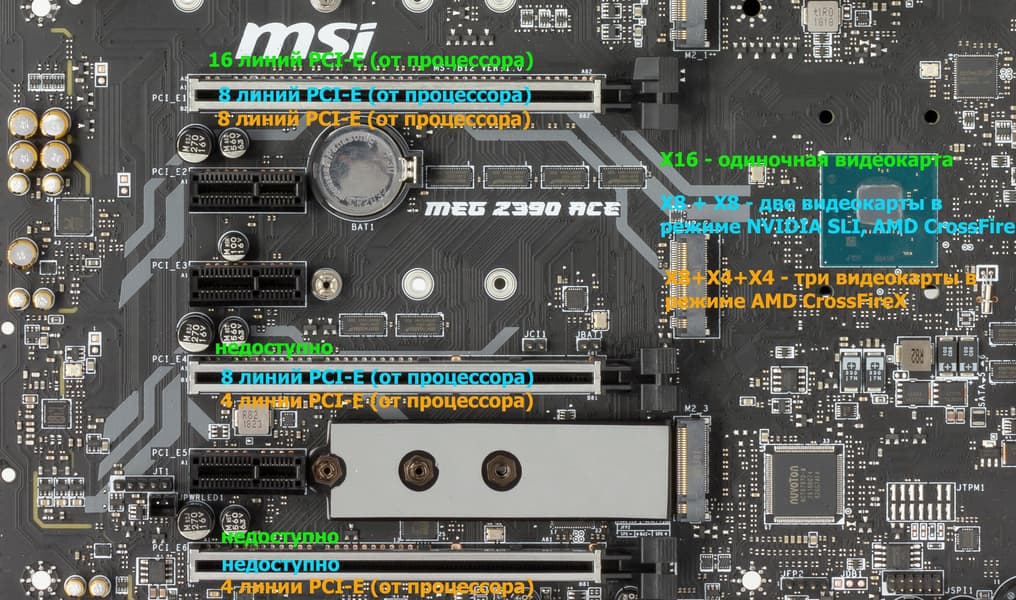 Начнем со слотов PCI-E.
