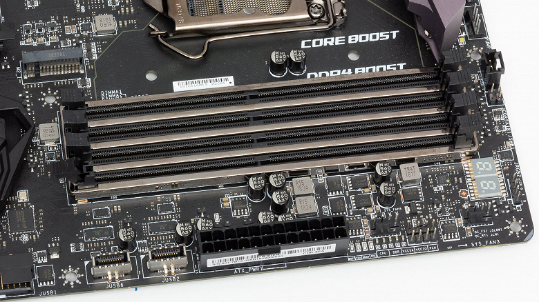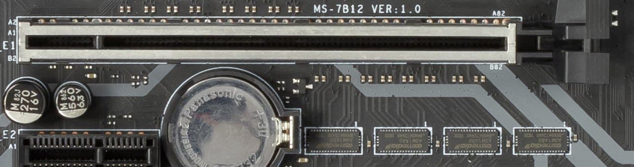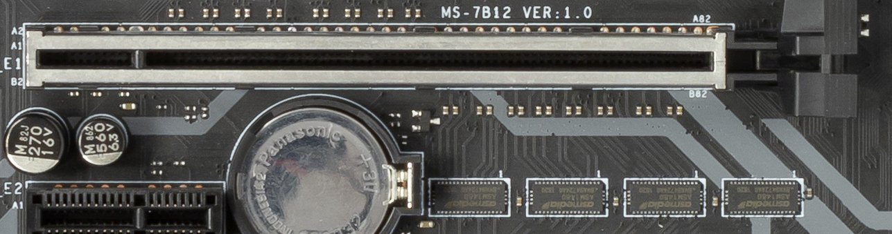 Для установки модулей памяти на плате MSI имеется четыре DIMM-слота (для работы памяти в Dual Channel в случае использования всего 2 модулей их следует устанавливать в А1 и B1 (А2 и В2)). Плата поддерживает небуферизованную память DDR4 (non-EСС), а максимальный объем памяти составляет 64 ГБ (при использовании модулей емкостью по 16 ГБ) и 128 ГБ (при использовании UDIMM последнего поколения по 32 ГБ). Разумеется, поддерживаются профили XMP.